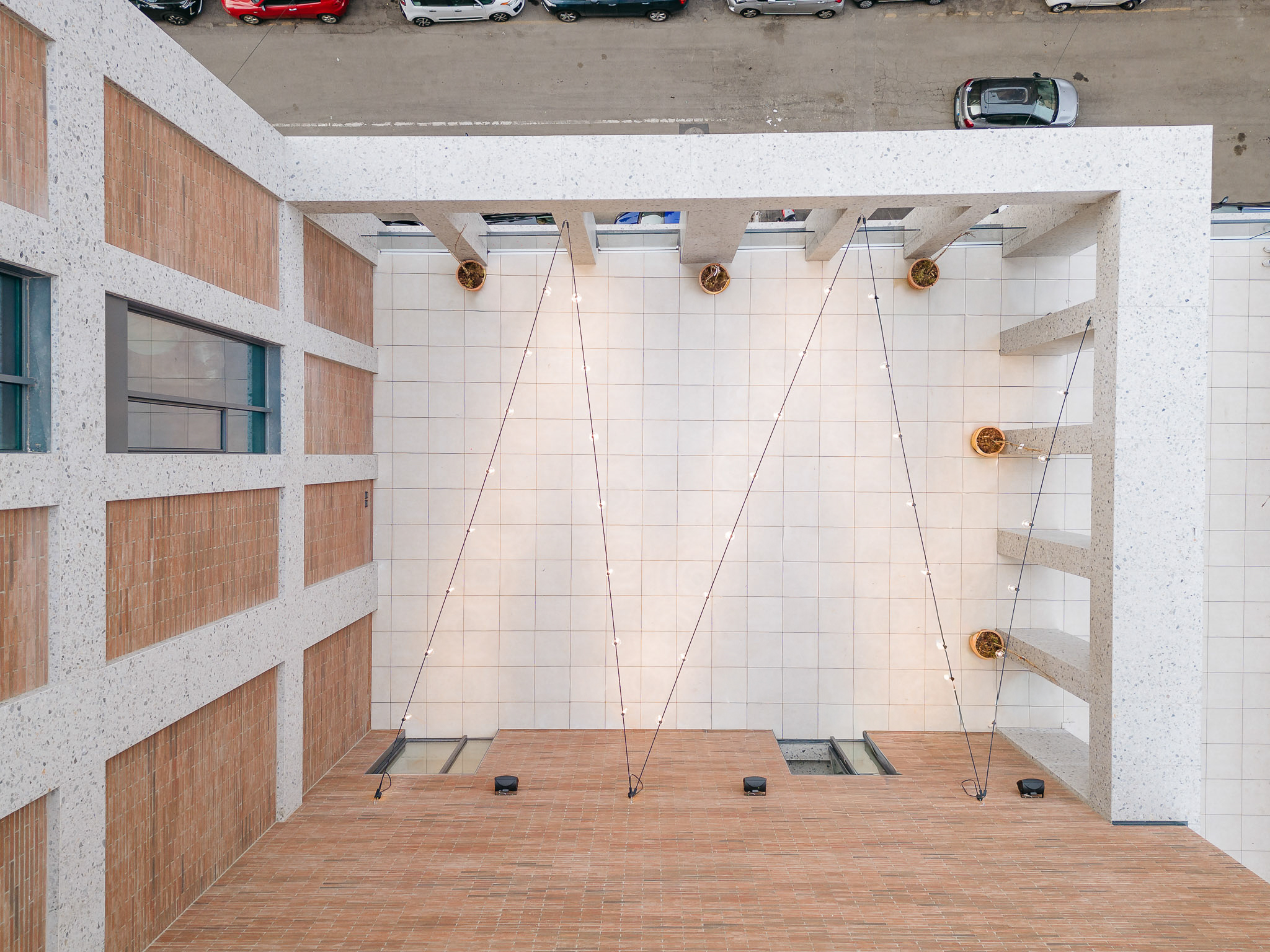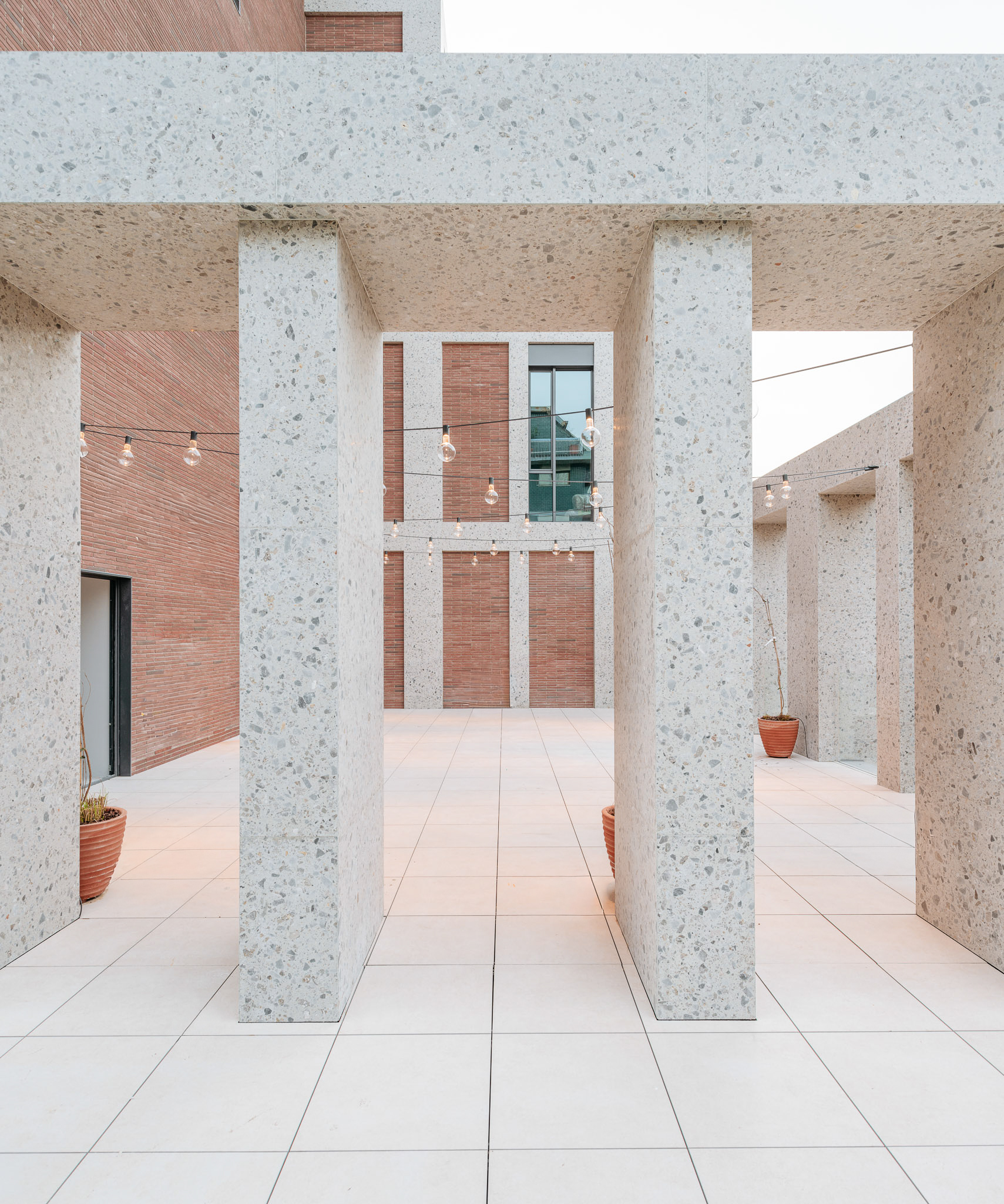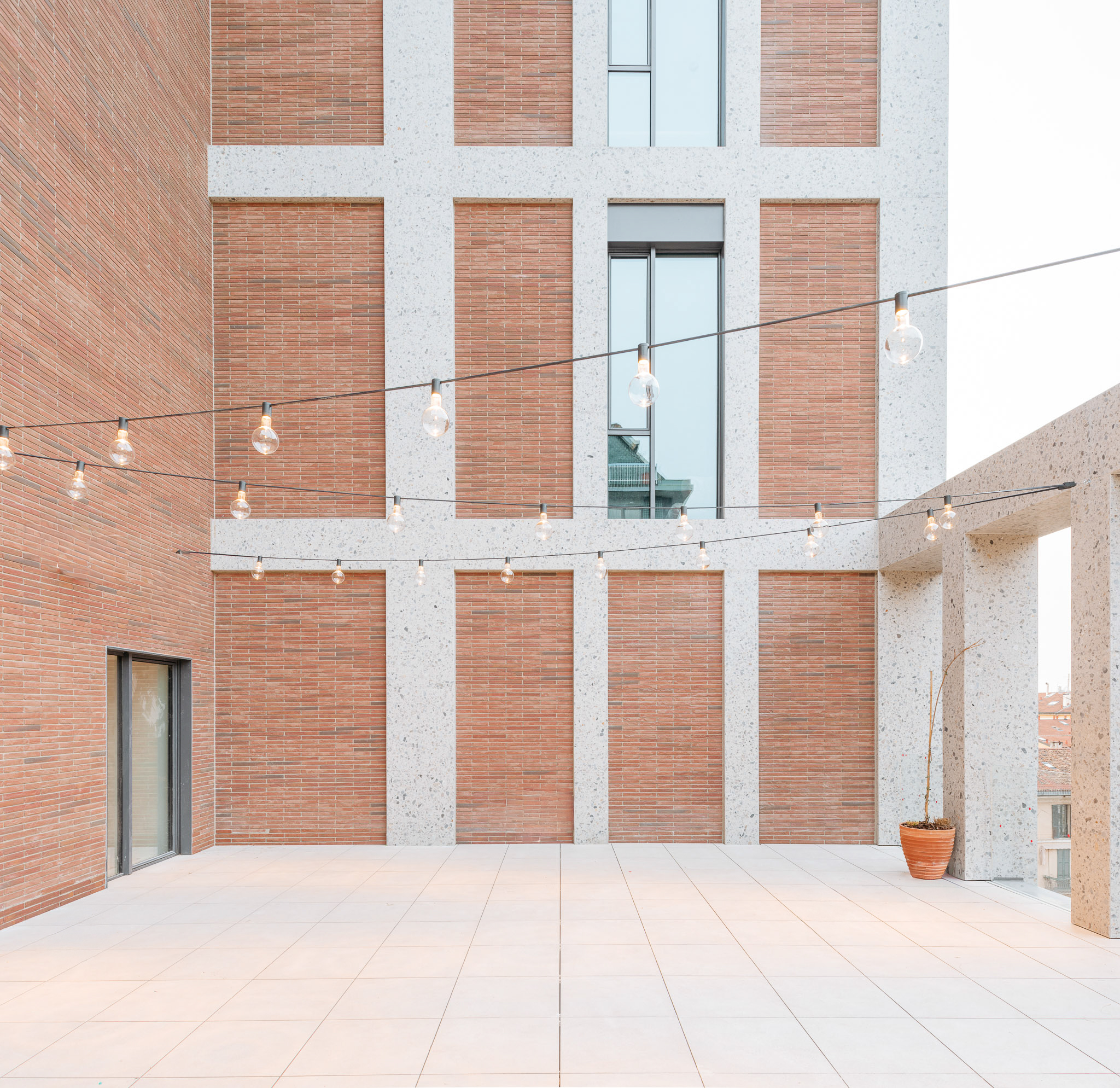 Il colore utilizzato per i rivestimenti di 21 House of Stories è l’SB 130 Aggloceppo, una delle espressioni più affascinanti del terrazzo: una base dalle tonalità nocciola, movimentata da frammenti di marmo più chiari e più scuri capaci di creare un gioco visivo naturale. Si tratta di una tonalità pensata per chi desidera ambienti che trasmettano calore, ma al tempo stesso contemporaneità, valorizzando l’architettura circostante. L’SB 130 Aggloceppo è un colore che arrichisce gli spazi, aggiunge profondità e accompagna la luce. La superficie dialoga con la luce e con le proporzioni architettoniche, contribuendo a creare un linguaggio equilibrato e distintivo, in linea con l’identità del progetto. Pensato per contesti hospitality ad alta intensità d’uso, il terrazzo Agglotech assicura alti livelli di resistenza e affidabilità, mantenendo costanti le caratteristiche estetiche.