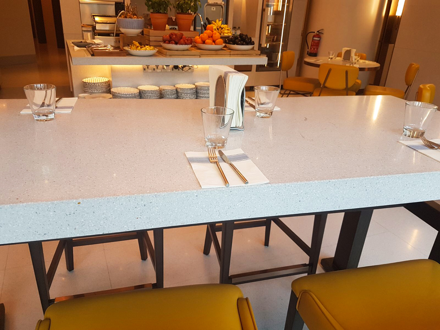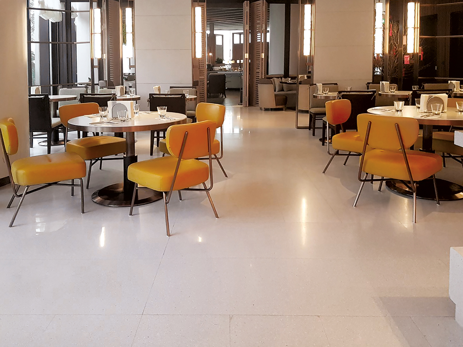 Nel prestigioso Andaz Hotel di Singapore, Agglotech, in collaborazione con il partner locale Hafary, ha fornito il proprio terrazzo in marmo cemento per pavimenti e rivestimenti d’interni. Il materiale è stato scelto anche per la creazione di due raffinate isole polifunzionali nella sala colazioni, a testimonianza della versatilità del terrazzo Agglotech in contesti contract di alto livello.
