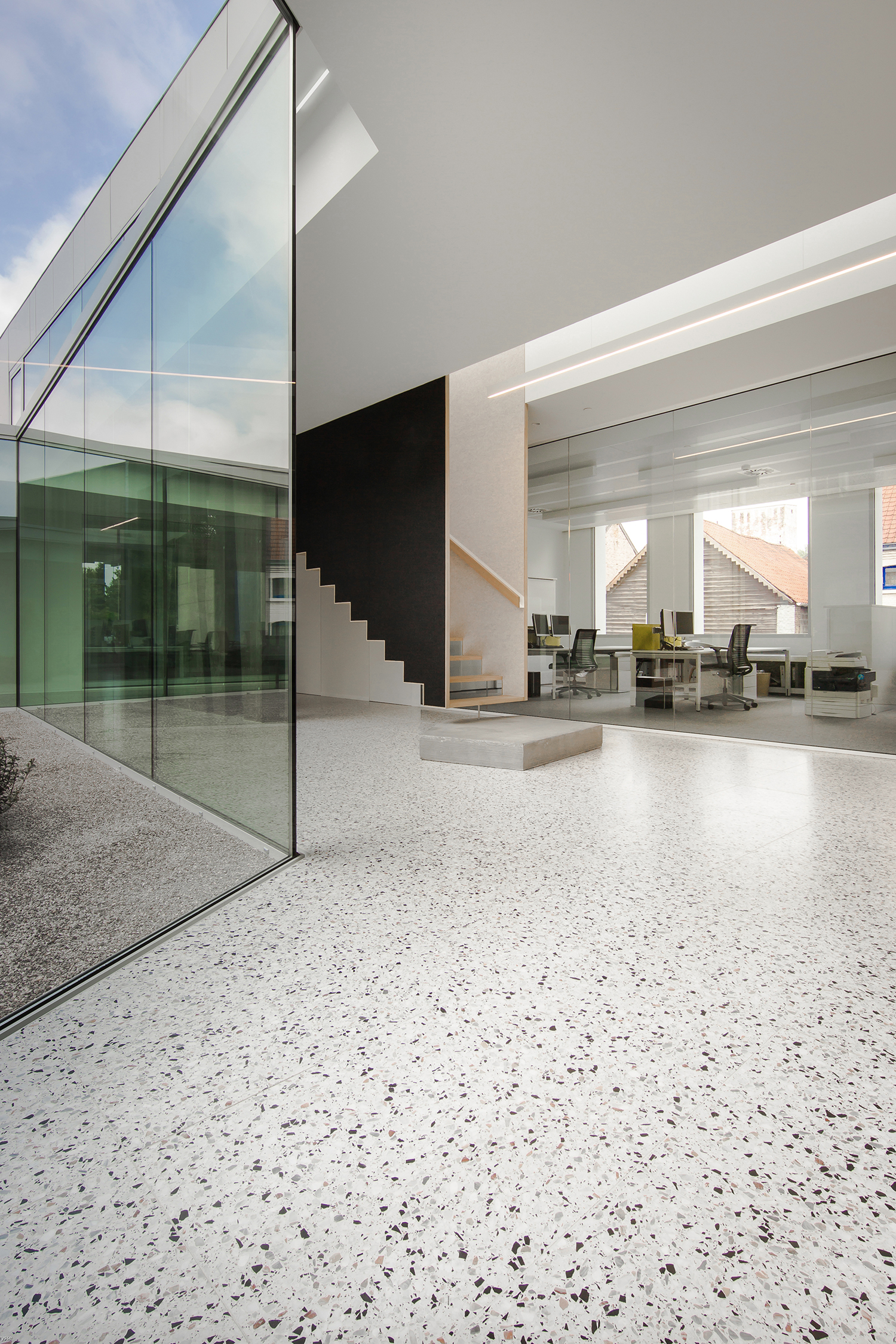 Agglotech ha fornito il terrazzo in marmo cemento per l’intera pavimentazione degli uffici direzionali dell’azienda Bekina, in collaborazione con il partner belga Bomarbre. Il progetto, dal concept innovativo e contemporaneo, si caratterizza per spazi dal design unico, valorizzati dal terrazzo Agglotech.