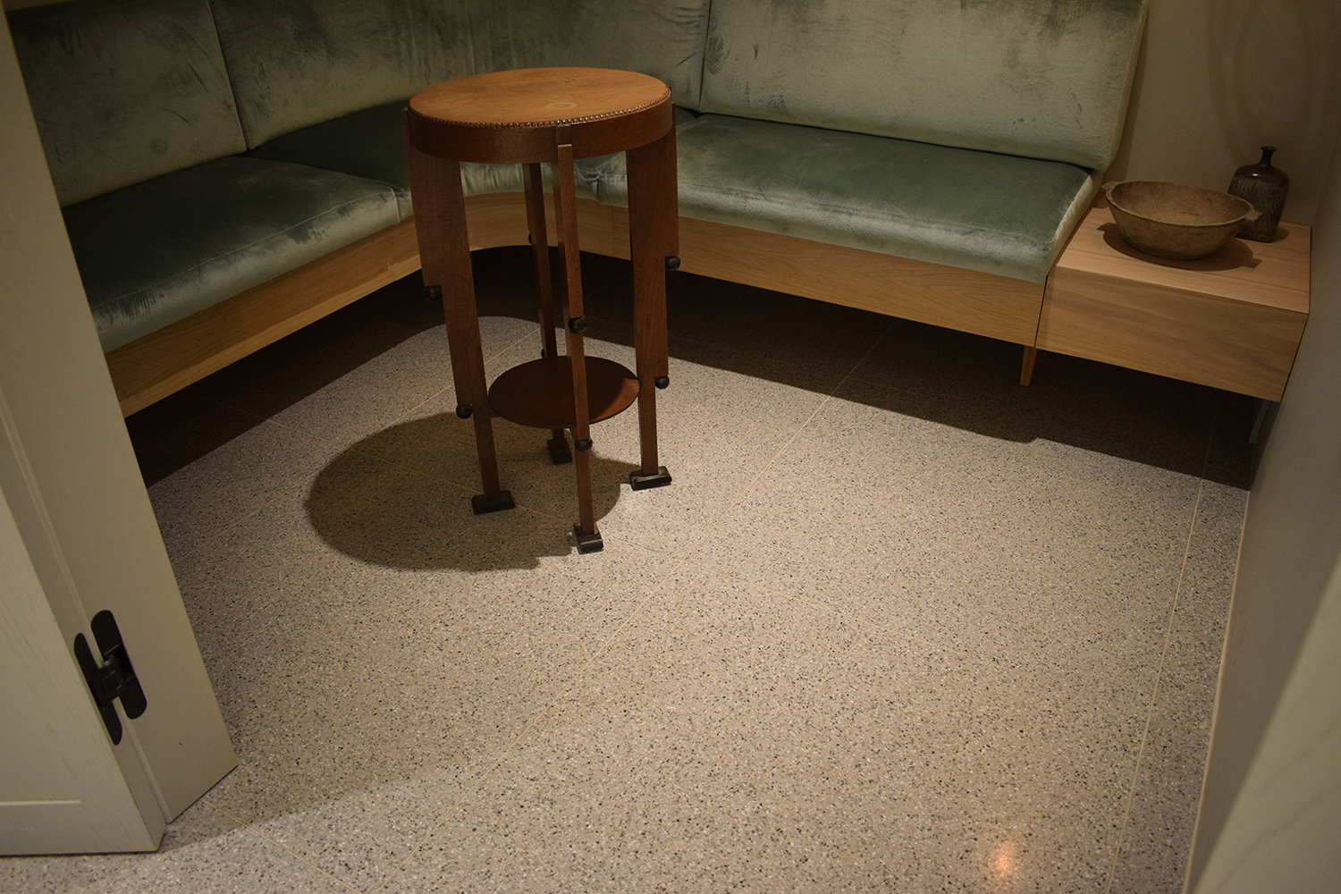 Oltre ai pavimenti, il terrazzo Agglotech è stato utilizzato anche per alcuni elementi d’arredo, confermando la versatilità e la resistenza del materiale. Grazie alla sua omogeneità cromatica e alla continuità estetica, l’SB 103 Grigio Medio è oggi una delle soluzioni più apprezzate da architetti e designer per spazi di pregio.
