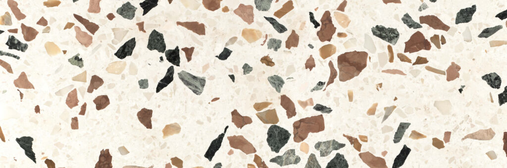 Colori Colours SB 210 Murano di Agglotech è un terrazzo ispirato alla tradizione del seminato veneziano, con un fondo chiaro impreziosito da graniglie di marmo di media dimensione nei toni caldi del rosso, dell’ocra e del marrone, alternate a sfumature verdi e nere. Una superficie vivace e armoniosa che richiama l’eleganza artigianale delle antiche pavimentazioni […]