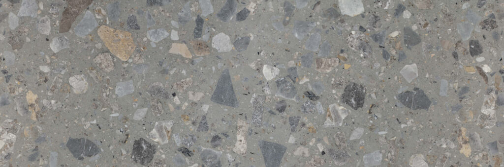 Colors Colours REG 3784 Aggloceppo Dark by Agglotech is a terrazzo with a strong and profound character, inspired by Ceppo di Gré stone but reinterpreted in a more intense form. Its dark gray base, almost graphite-like, features marble fragments of various sizes in shades of gray, beige, and ivory, creating a textured and contemporary visual […]