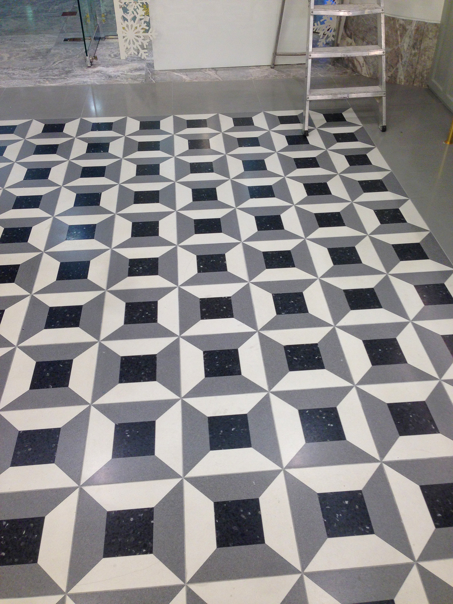 The Agglotech micro terrazzo, characterized by very fine marble chips and evenly distributed, guarantees a compact, elegant, and resistant surface, ideal for prestigious commercial spaces.