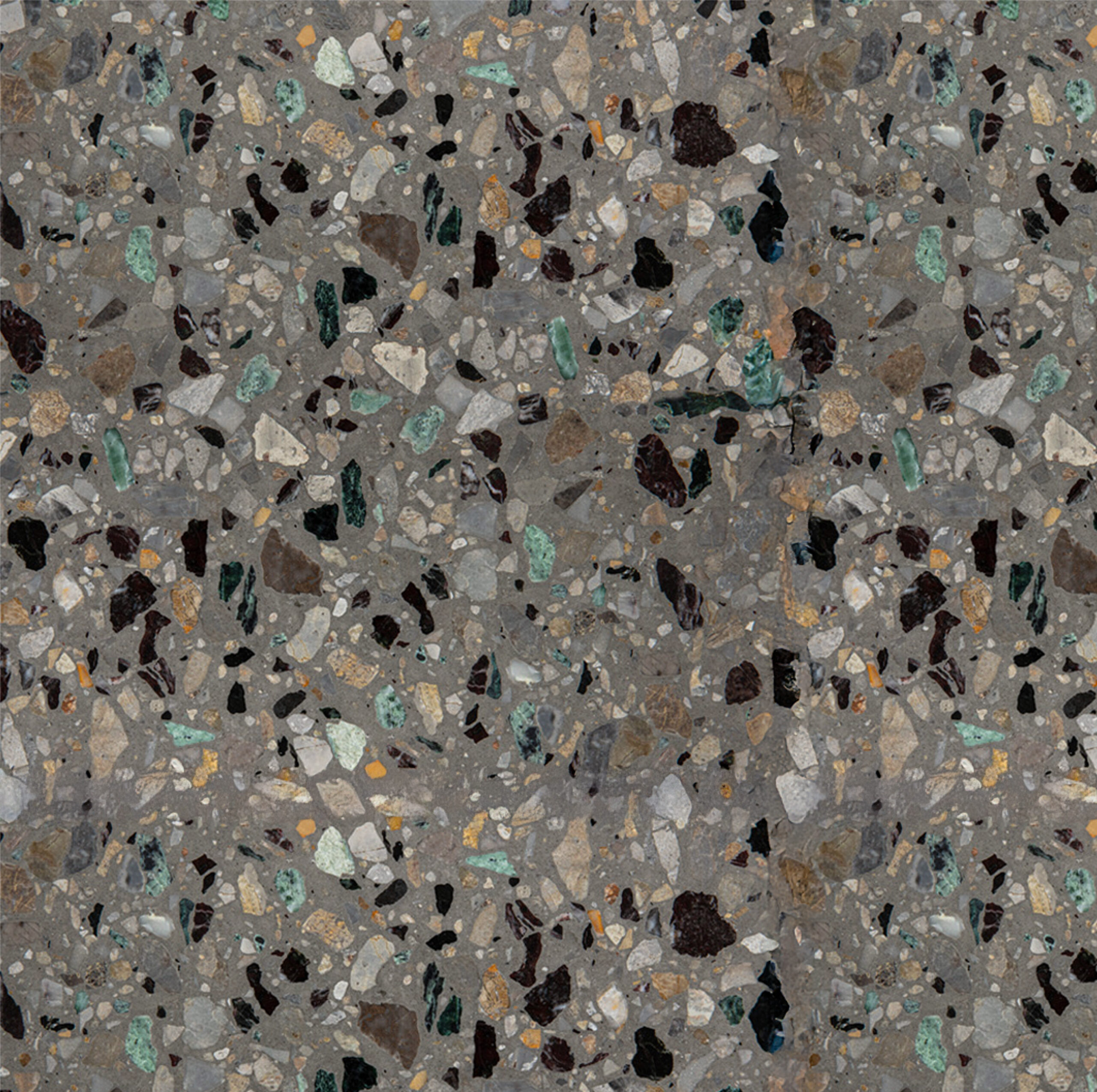 SB 121 Multicolor Chiaro by Agglotech is a terrazzo with vibrant and harmonious appeal, characterized by featuring a neutral base with marble aggregates in various tones: gray, green, ochre, and brown. The interplay of contrasts and reflections adds depth and character to the surface, creating a dynamic yet elegant effect. Perfect for flooring and cladding in classic or contemporary terrazzo, Multicolor Chiaro represents a refined balance between Venetian tradition and architectural modernity, ideal for public, retail, and residential spaces.