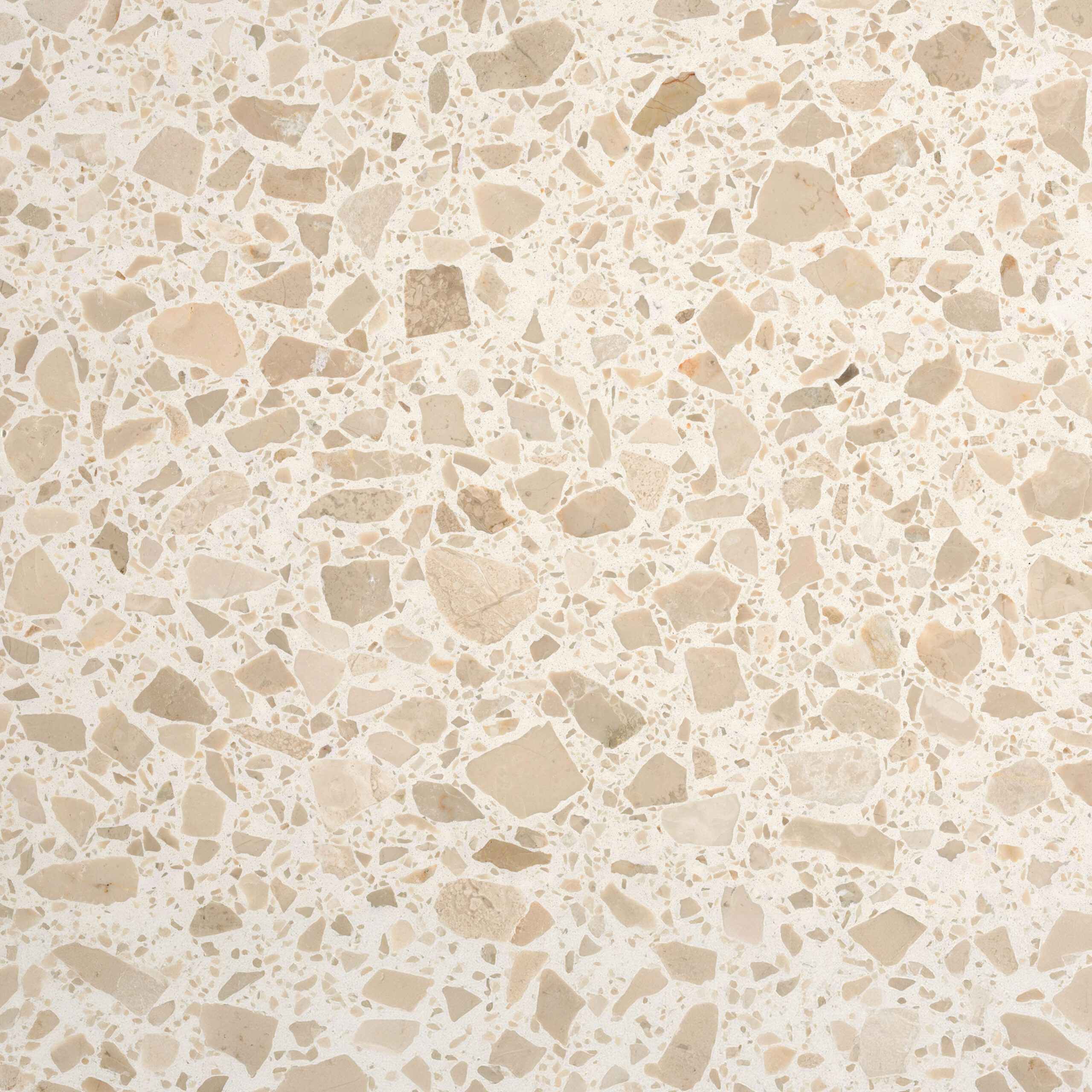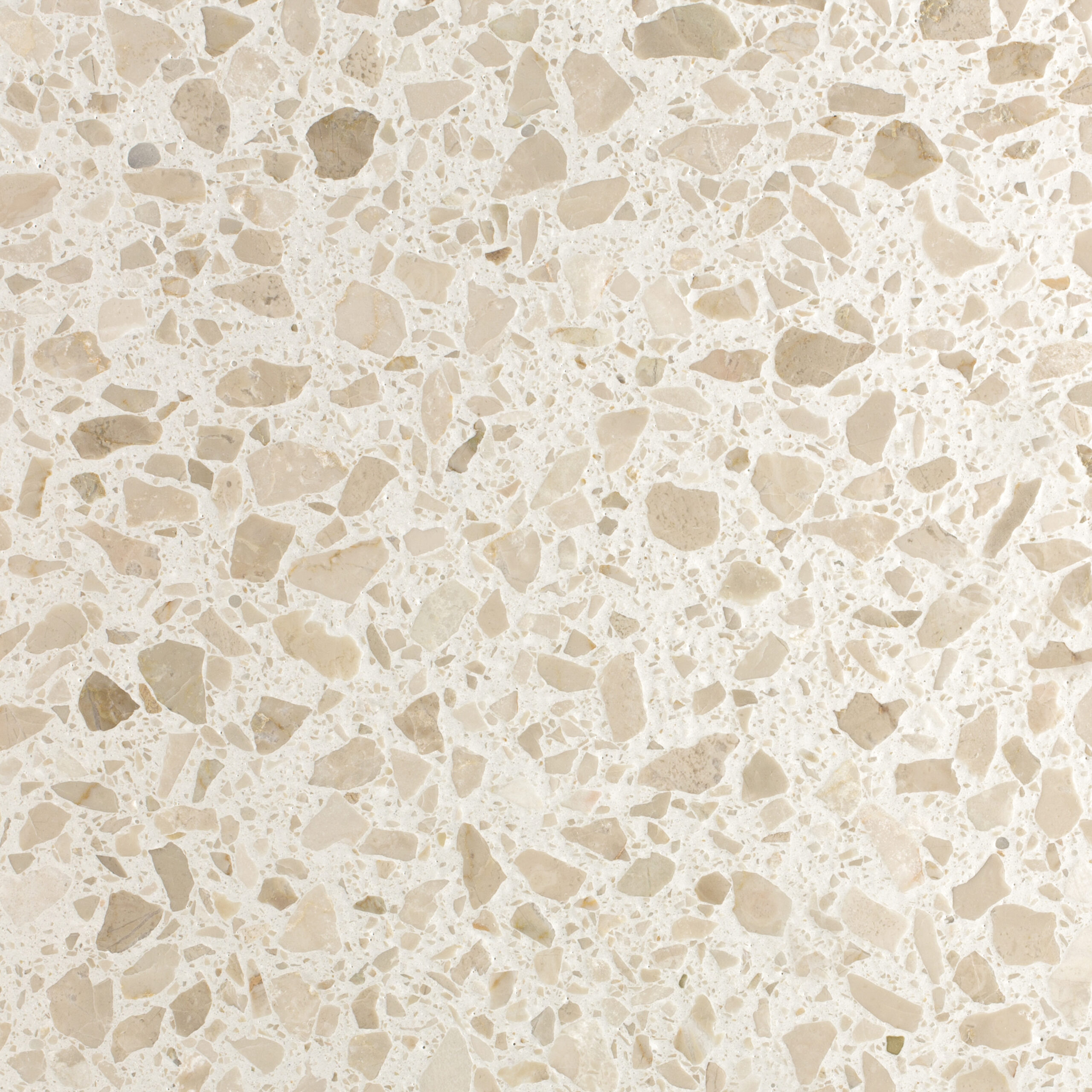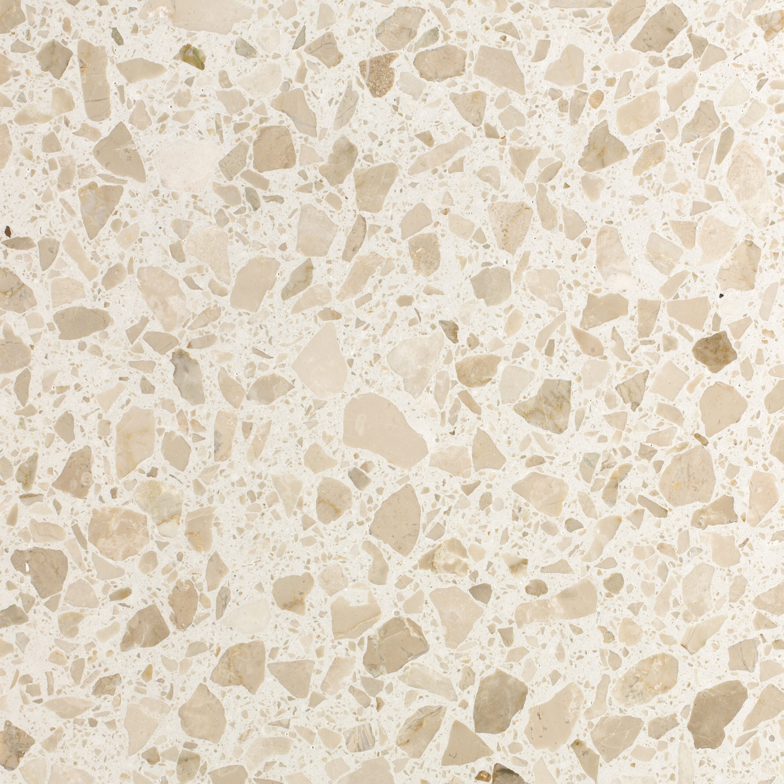 SB 177 Botticino 25 by Agglotech is a terrazzo with warm and natural character, featuring a light beige base enriched with large Botticino marble flakes in sand and ivory tones. The lively and dynamic texture recalls the authentic elegance of Lombard marble, reinterpreted through a contemporary lens thanks to cement-based aggregate. This terrazzo color blends tradition and modernity, proving ideal for flooring and cladding in residential, commercial and hospitality spaces, where luminosity and material balance become the protagonists.