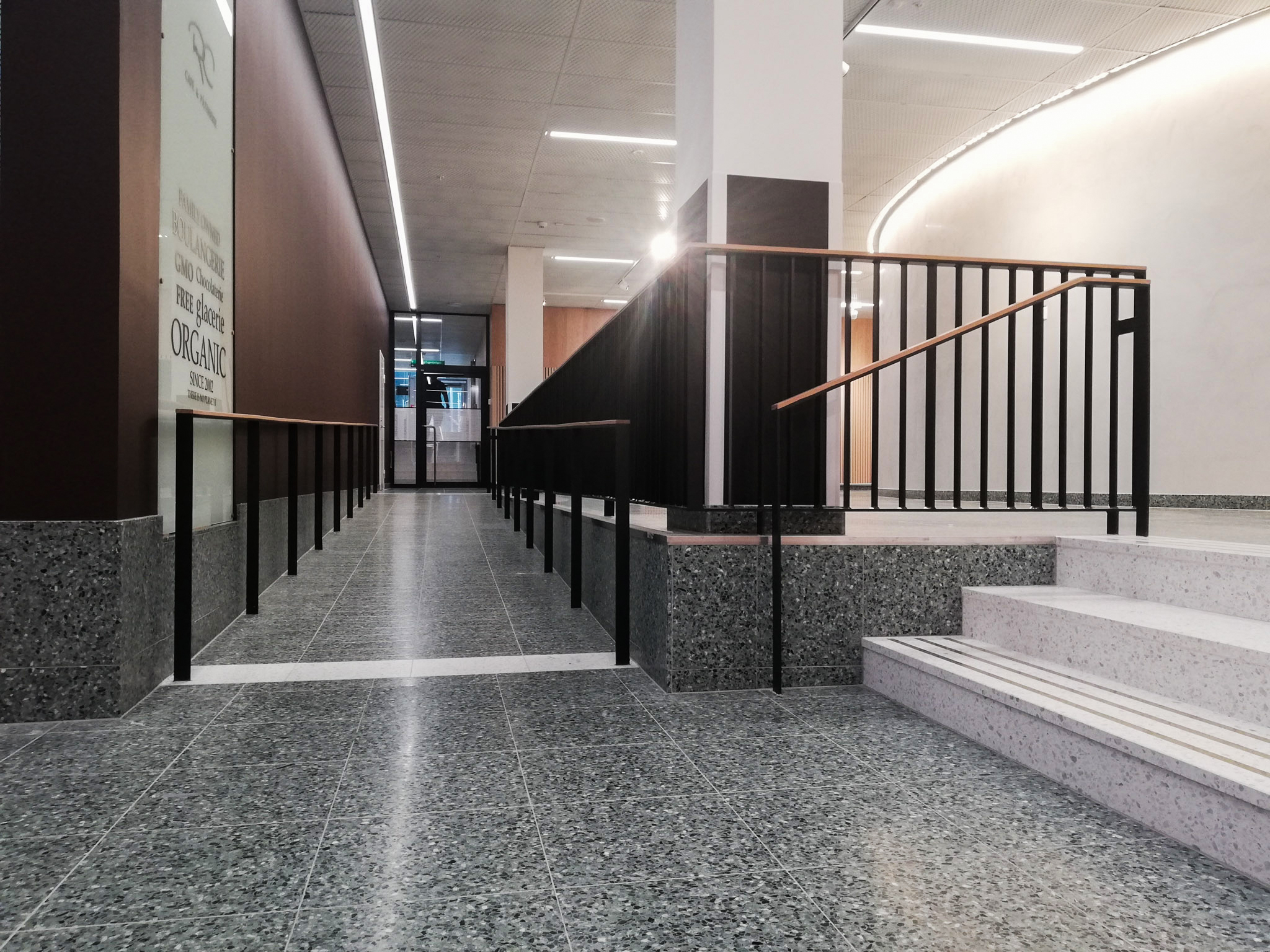 Created with the aim of becoming a center of excellence in ophthalmology, the new St. Erik Eye Hospital in Stockholm represents a meeting point between innovation, research and functional architecture. For the internal spaces, Agglotech, in collaboration with Swedish partner Svensk Terrazzo-Teknik, supplied its marble cement terrazzo for the cladding of the stairs, ensuring aesthetics, durability and safety.