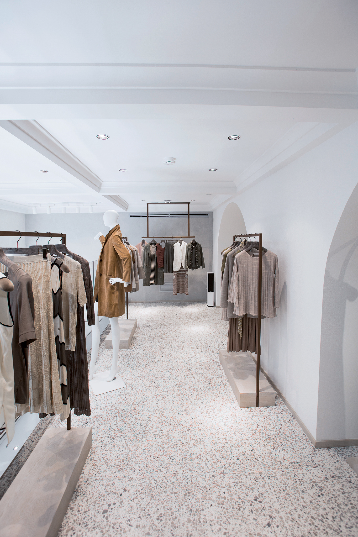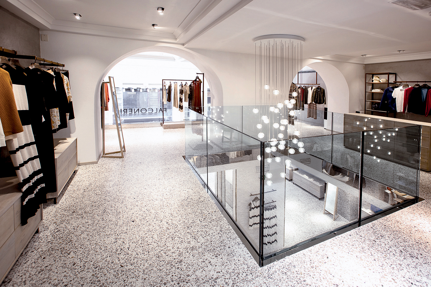 Fondata nel 2000 e parte del Gruppo Calzedonia dal 2009, Falconeri unisce da oltre vent’anni qualità sartoriale, accessibilità e uno stile giovane ma ricercato. Per il nuovo store di Firenze è stato sviluppato un terrazzo Agglotech personalizzato nella colorazione REG 2458, caratterizzato da una miscela esclusiva: scaglie di marmo scuro di varie dimensioni, amalgamate in una brillante base cementizia bianca. Questa tonalità unica crea un ambiente dal design moderno e raffinato, che coniuga estetica e funzionalità e garantisce resistenza all’usura e lunga durata. Il terrazzo veneziano Agglotech riveste con eleganza pavimenti, pareti e colonne, valorizzando ogni dettaglio architettonico con uno stile senza tempo.
