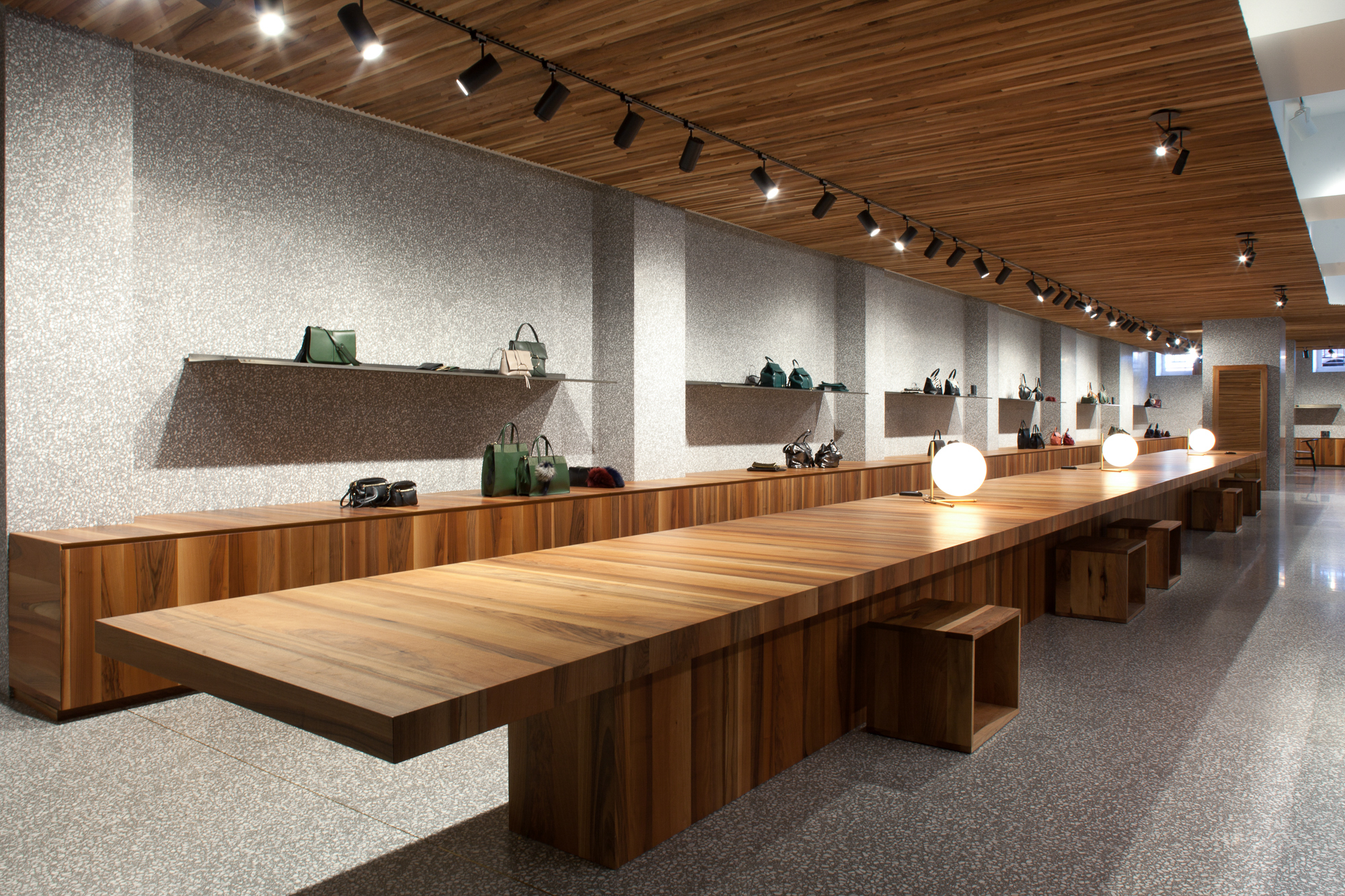 Il risultato è uno spazio dal carattere contemporaneo e accogliente, dove la superficie in terrazzo diventa elemento distintivo e scenografico, capace di valorizzare le collezioni del brand e di reinterpretare in chiave moderna la tradizione del pavimento alla veneziana.