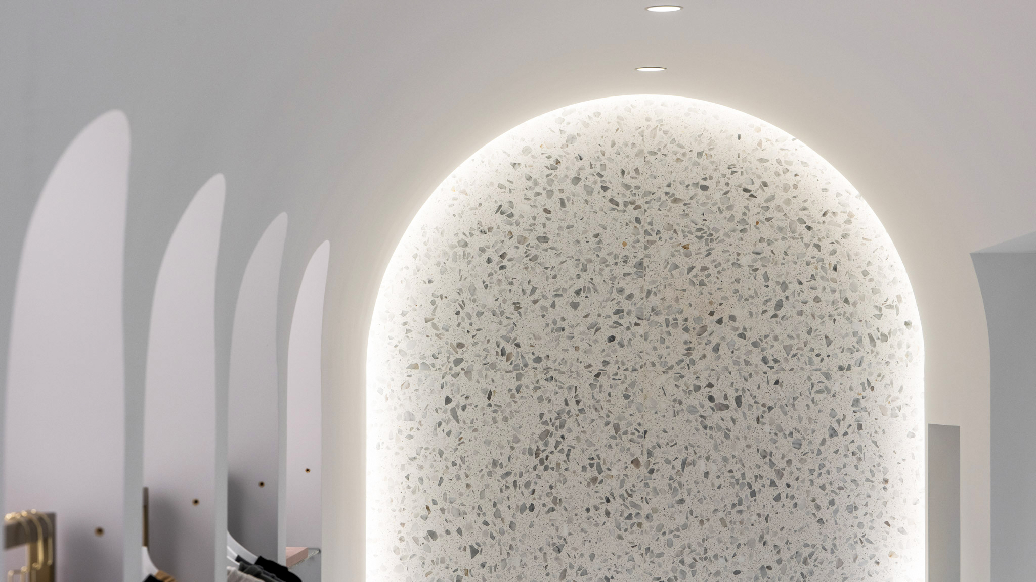 A completare il progetto, il terrazzo SB 250 Lido con il suo mosaico a grana grossa anima una facciata interna e il banco cassa, richiamando la tradizione classica veneziana. Il risultato è uno store dal design essenziale e minimalista, in cui pavimenti e rivestimenti in terrazzo Agglotech uniscono estetica, resistenza e identità italiana.