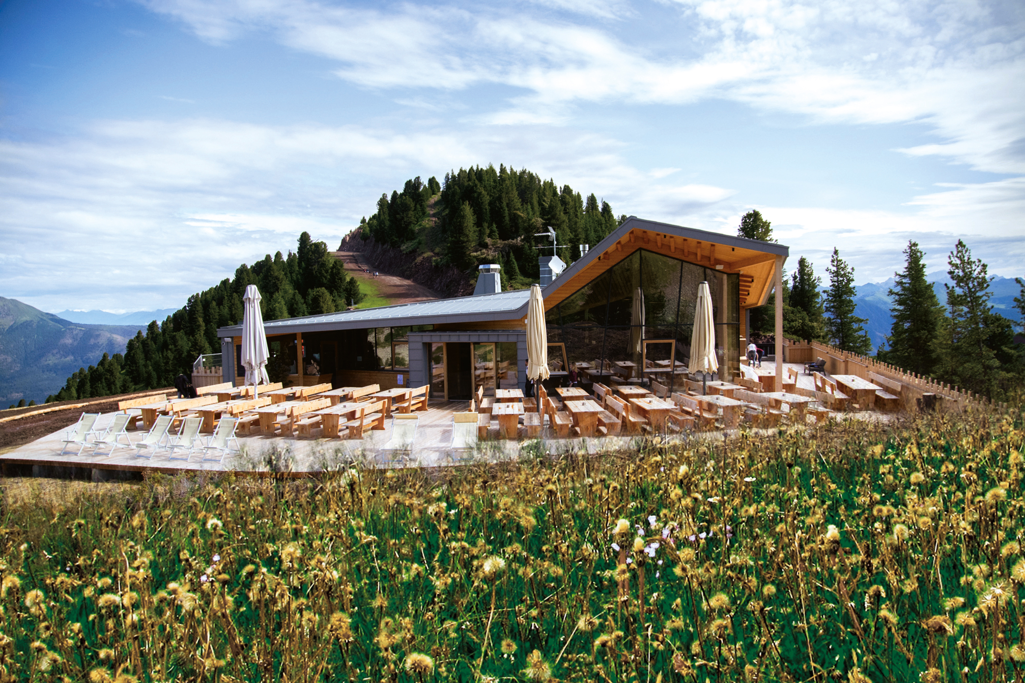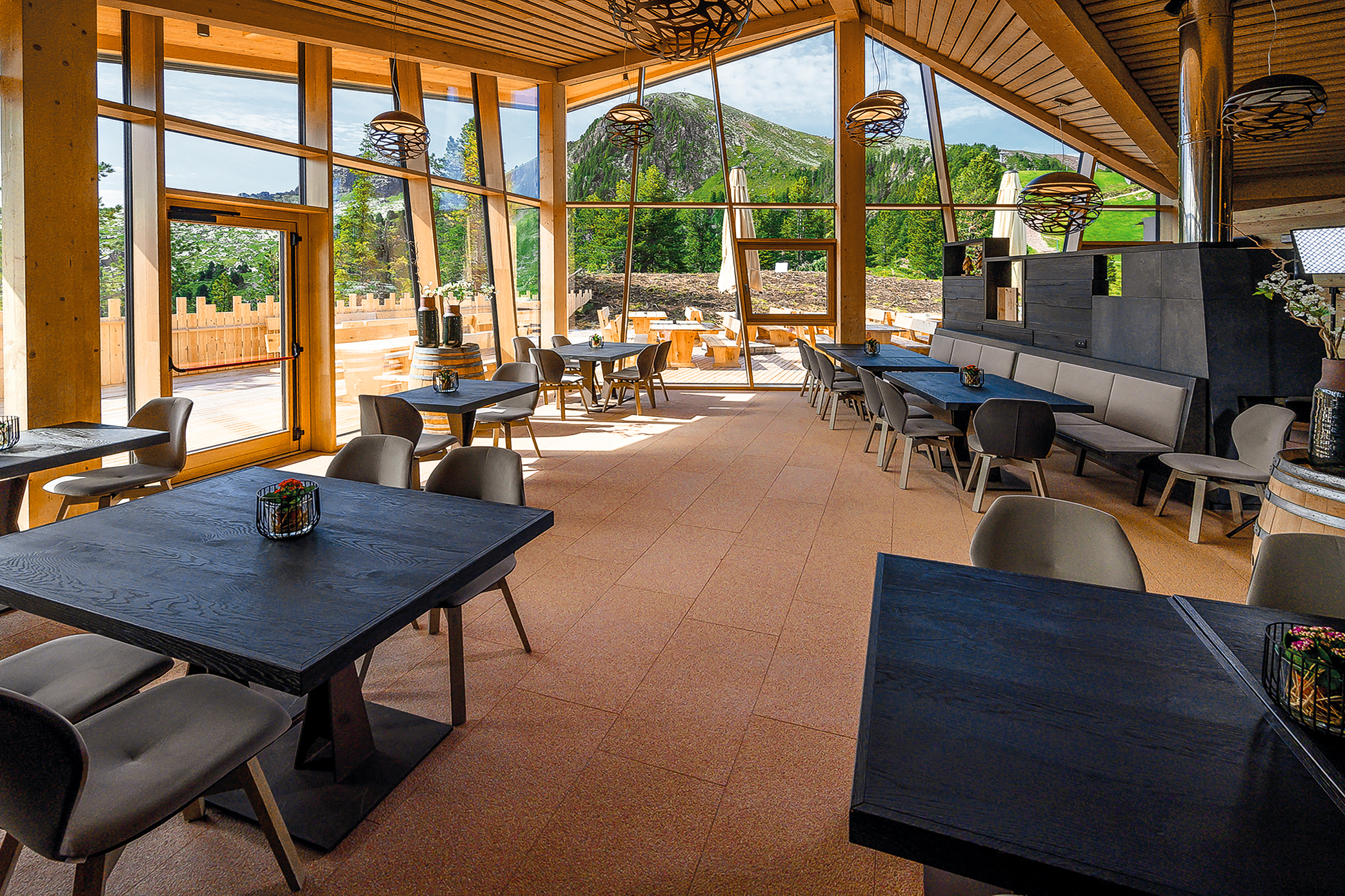 Realizzato interamente negli stabilimenti Agglotech di Marzana e Grezzana (VR), il terrazzo garantisce durabilità, sicurezza e una resa estetica naturale, in armonia con i toni caldi del legno e la sobrietà del contesto alpino.