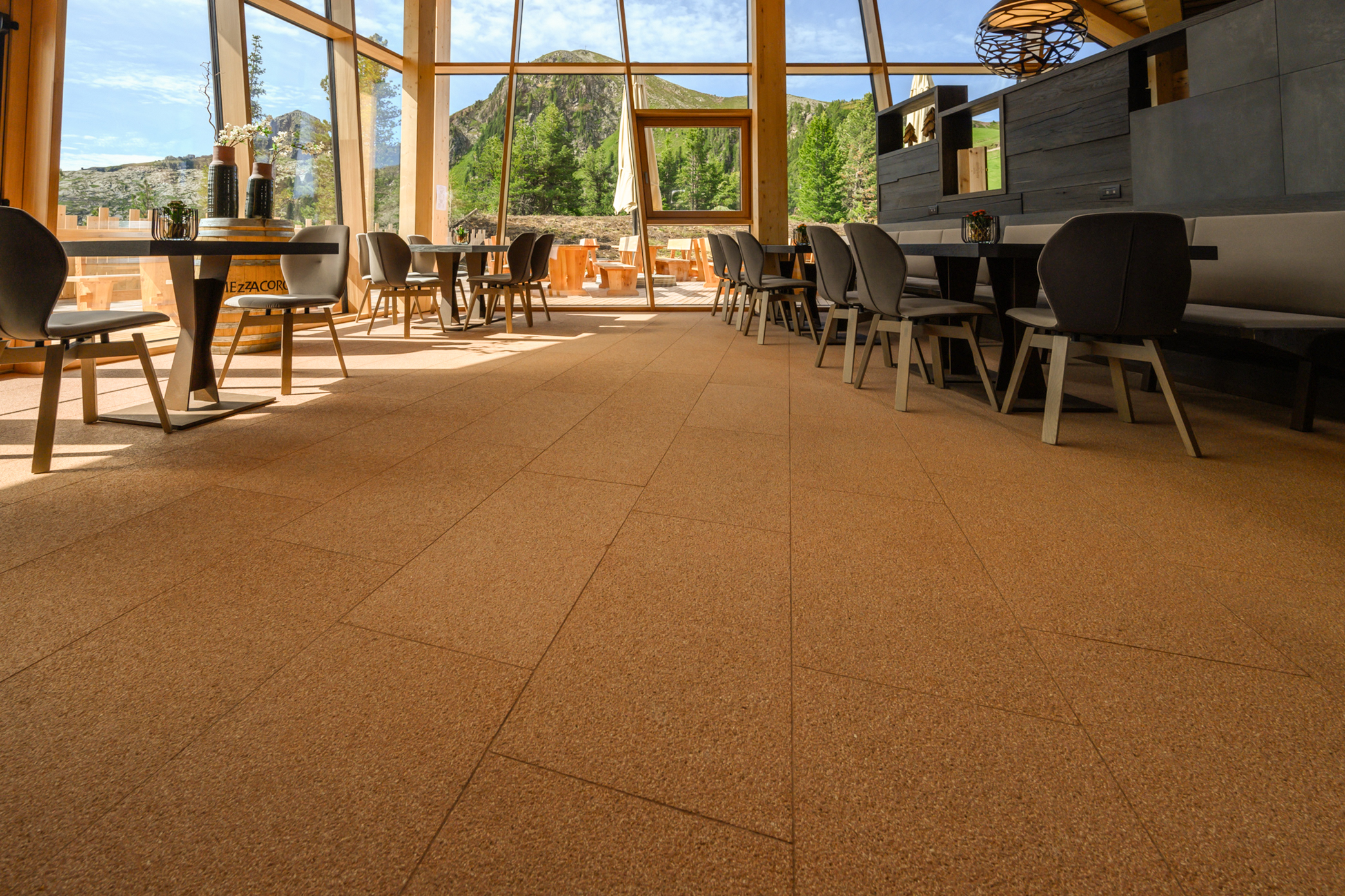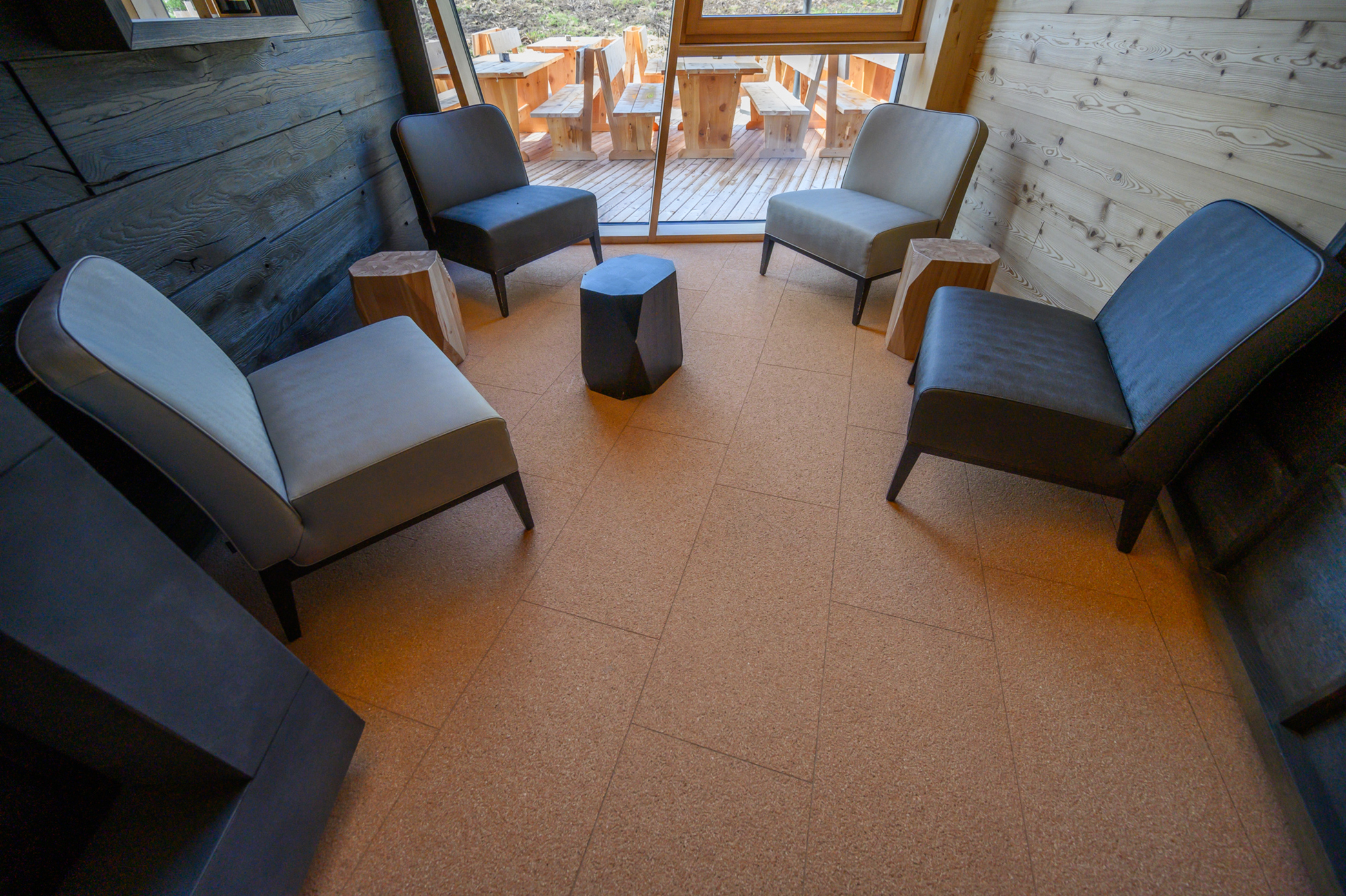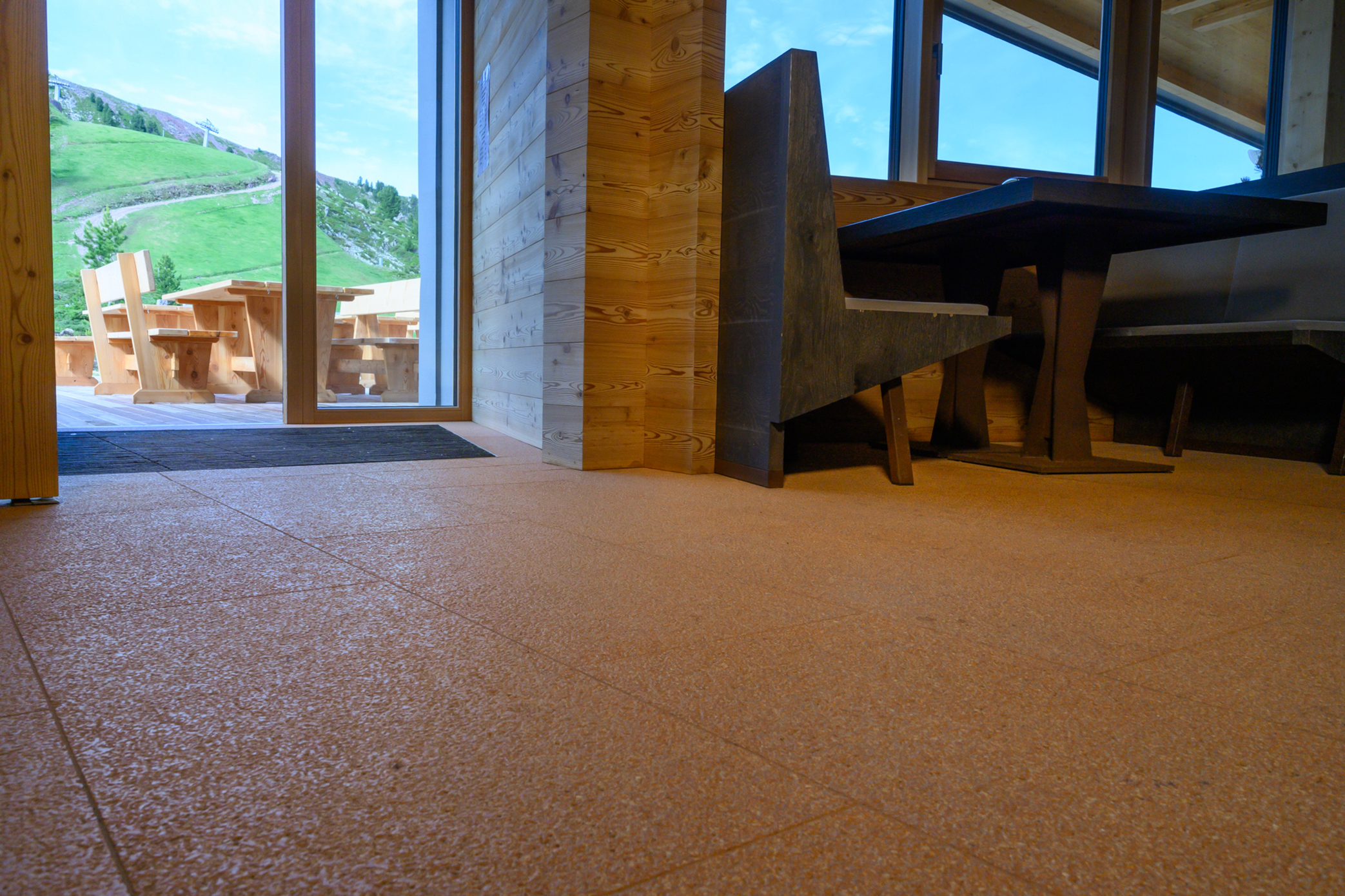 In collaborazione con Delfin Srl e Sevis, Agglotech ha fornito il proprio terrazzo in marmo cemento SB 110 Terracotta per i pavimenti interni dello Chalet.