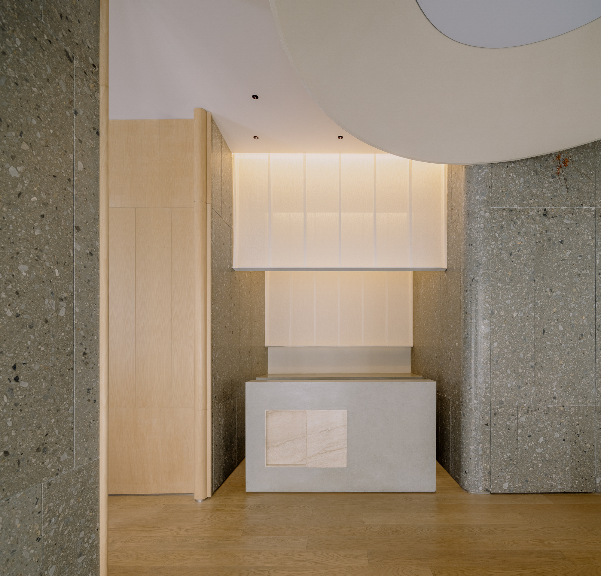 Per il raffinato Lunar Restaurant di Shanghai, Agglotech ha fornito il terrazzo alla veneziana per il rivestimento delle pareti e delle superfici verticali, contribuendo a creare un ambiente che unisce equilibrio, matericità e luce naturale.