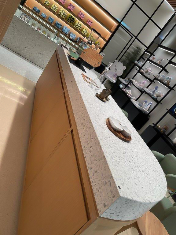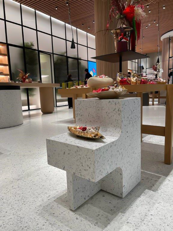 Per la boutique Patchi situata all’interno del prestigioso Dubai Mall, Agglotech ha fornito il proprio terrazzo alla veneziana, contribuendo a definire uno spazio raffinato e contemporaneo che unisce design e artigianalità. In collaborazione con Sensi, il progetto interpreta perfettamente lo stile elegante e minimale del brand, con arredi dalle linee morbide e materiali naturali che dialogano armoniosamente tra loro.