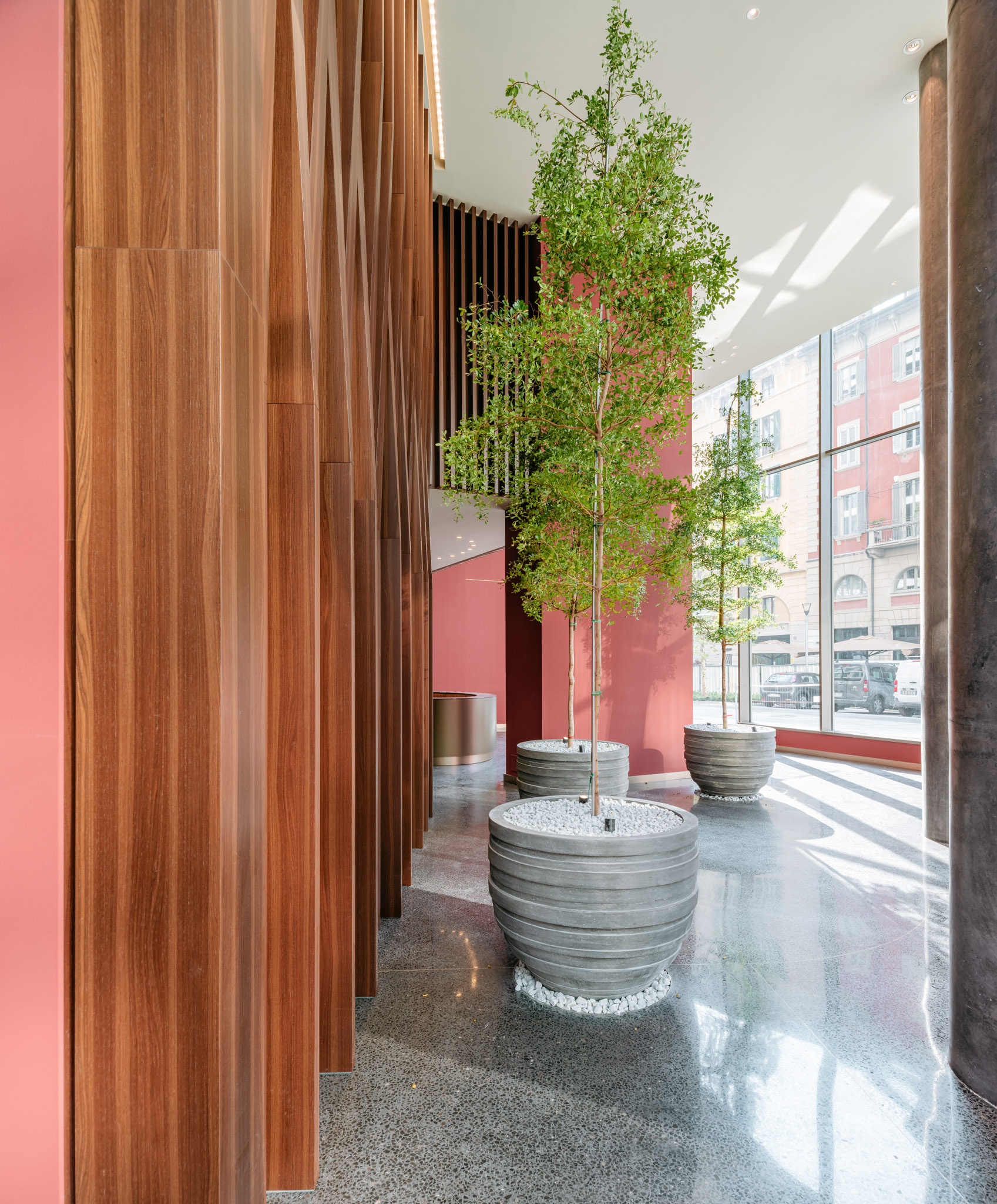 In questo contesto di innovazione architettonica, le tonalità SB 130 Aggloceppo e SB 260 Tronchetto definiscono il linguaggio materico delle superfici, interpretando con eleganza e personalità l’identità del Porta Nuova Centro.