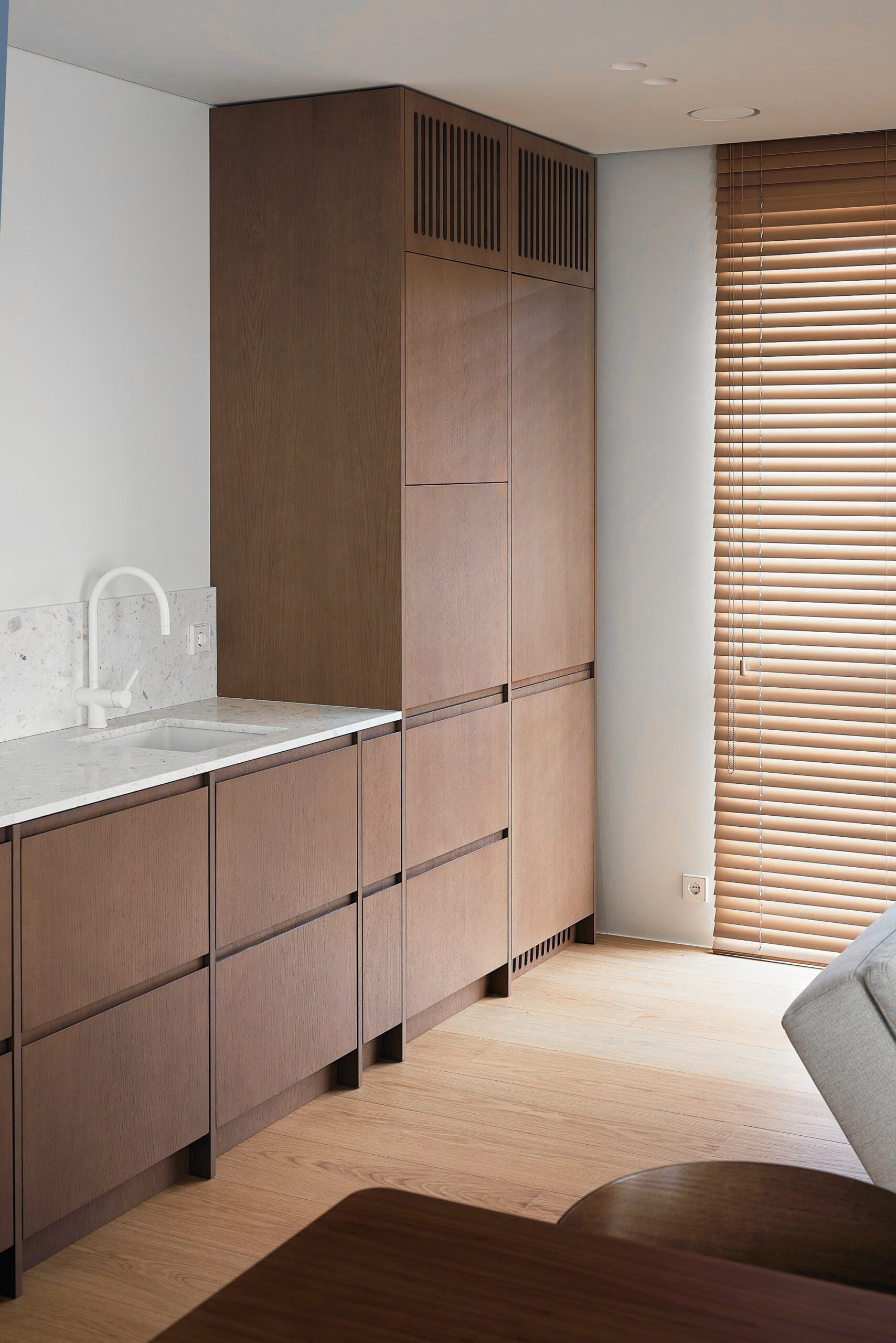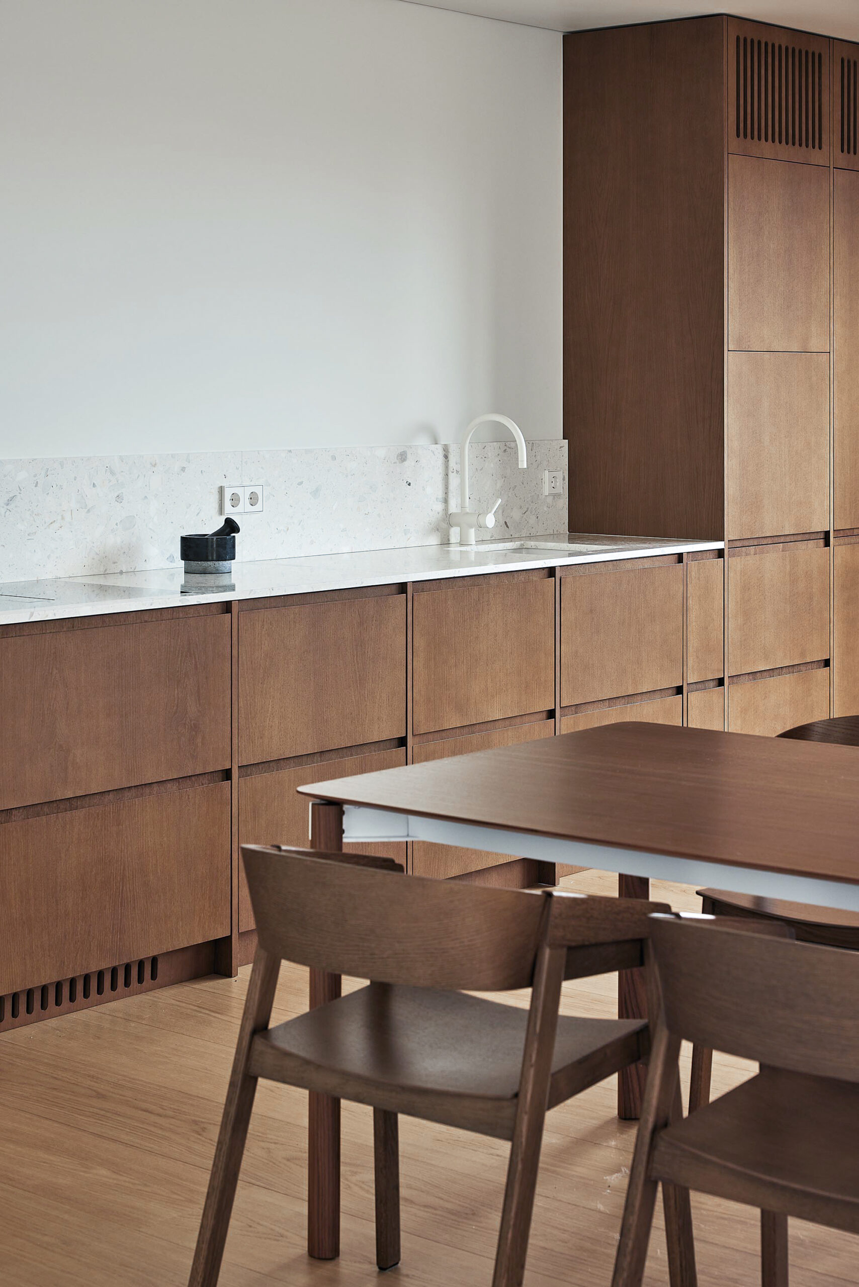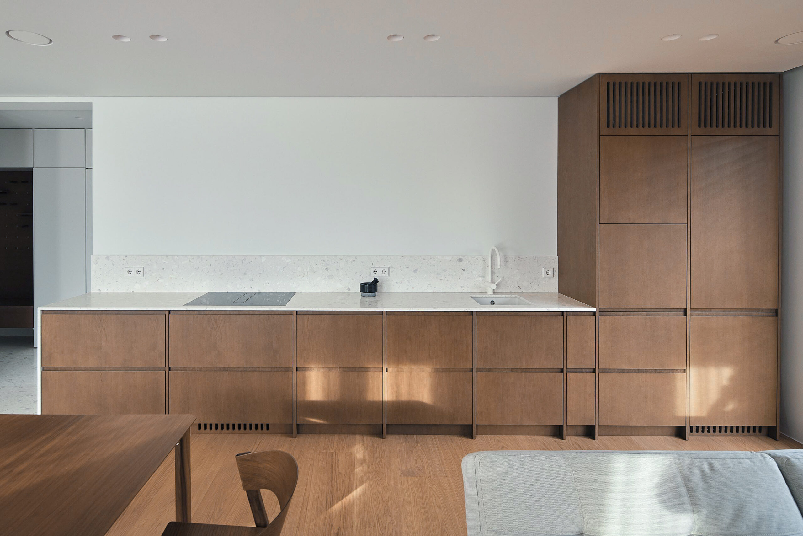 Il progetto Lapukas racconta un appartamento privato in Lituania, all’interno di uno scenario residenziale in forte sviluppo architettonico. Qui, la qualità dellla vita si combina con un’estetica pulita, nordica e contemporanea, caratteristica delle nuove aree urbane del Paese: una forte attenzione ai materiali naturali, linee essenziali e spazi luminosi. In questo contesto, il colore SB 290 Calacatta della collezione Agglotech rappresenta una delle interpretazioni più eleganti del terrazzo alla veneziana in chiave moderna.