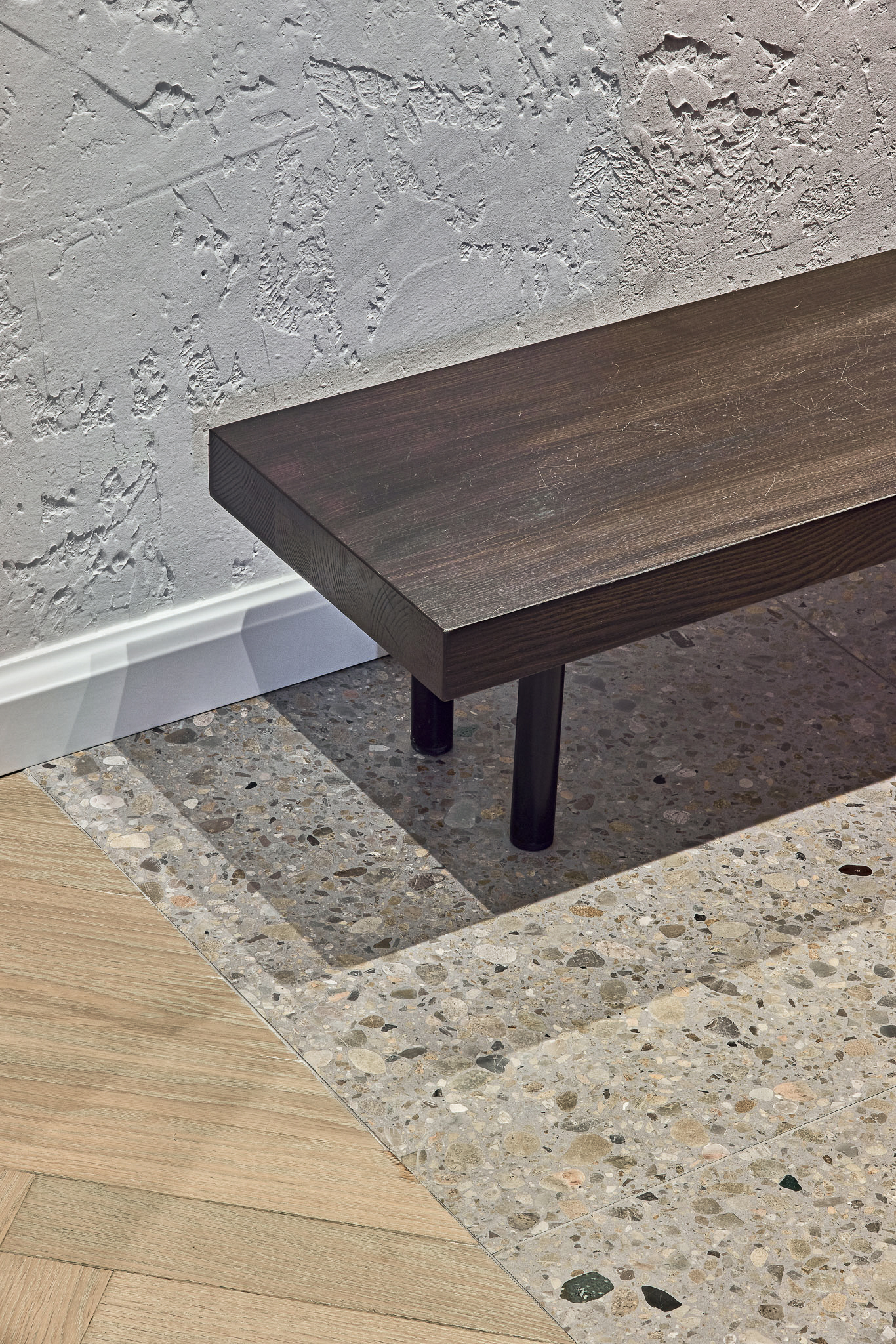 Entrambe le finiture esprimono la versatilità e la qualità del terrazzo Agglotech, capace di trasformare ogni ambiente in un equilibrio di materia, luce e design contemporaneo, confermando il valore intramontabile del terrazzo veneziano reinterpretato in chiave moderna.