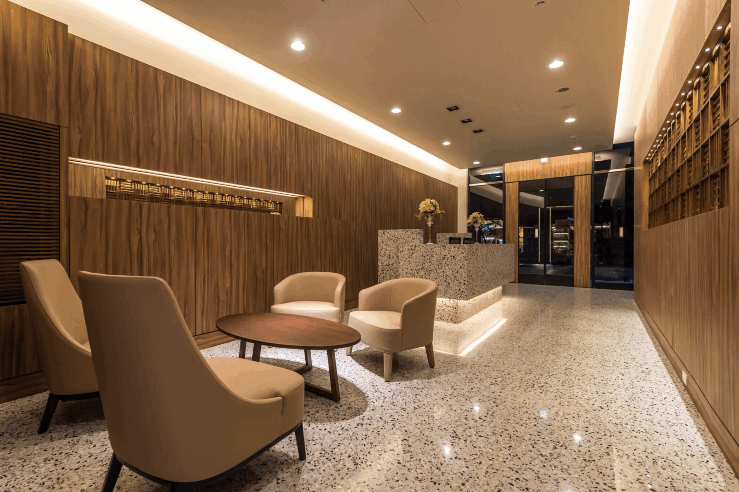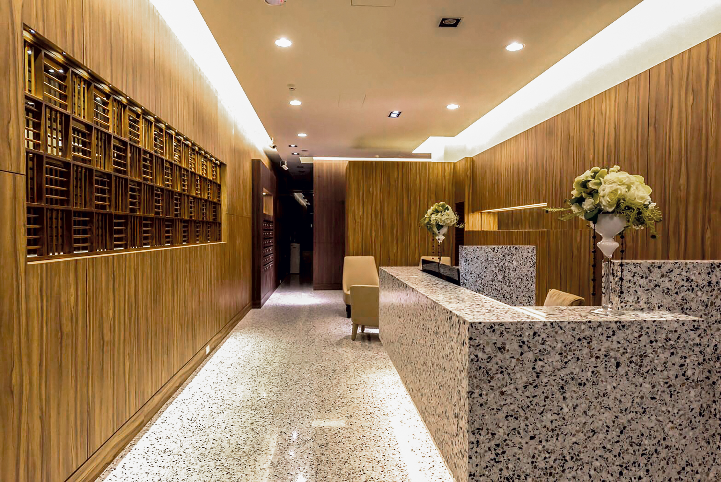 Nella hall di un moderno centro direzionale a Taiwan, Agglotech ha contribuito con soluzioni in terrazzo in marmo cemento in collaborazione con il partner locale Winnie Stone. Il progetto ha previsto una pavimentazione in graniglia di marmo e una scenografica reception in massello di terrazzo per un ambiente dal carattere deciso ed elegante.