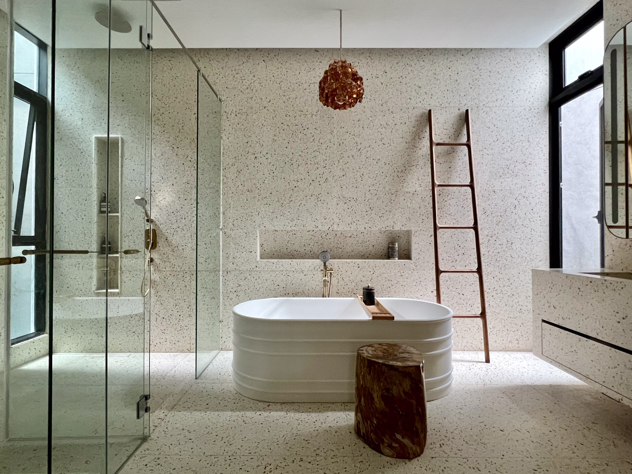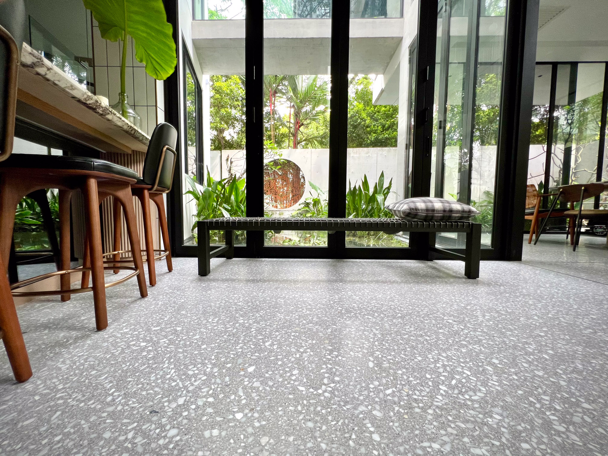 Nella prestigiosa Private Villa Kuala Lumpur, la scelta del terrazzo nelle colorazioni SB 240 Torcello, SB 130 Aggloceppo e SB 250 Lido trasforma interni, bagni e arredamenti in un insieme elegante e contemporaneo, dove ogni nuance dialoga con la luce della dimora.