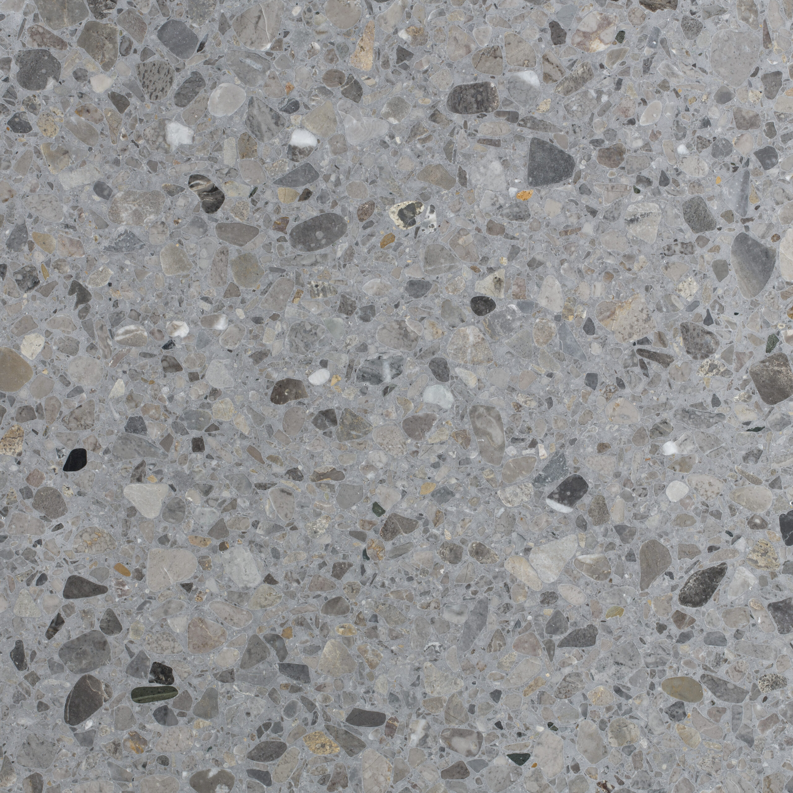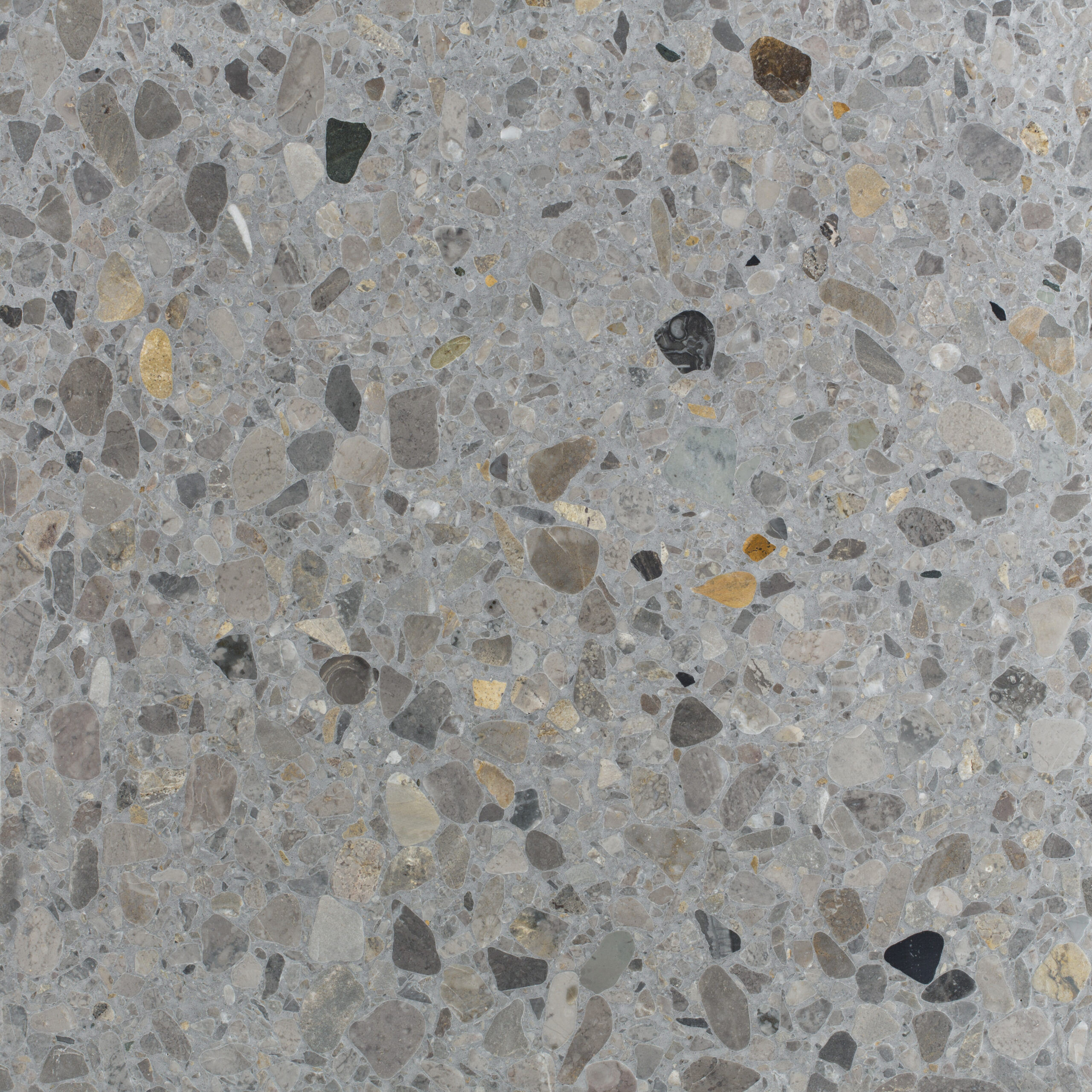 SB 124 Grigio Rotondo di Agglotech è un terrazzo dal design equilibrato e dinamico, con fondo grigio neutro e graniglie di marmo nei toni del beige, marrone e grigio. Le scaglie dalla forma rotondeggiante, che ispirano il nome della finitura, donano ritmo e movimento alla superficie, mantenendo un’eleganza senza tempo. Adatto a pavimenti, rivestimenti e scale, Grigio Rotondo è un colore terrazzo che combina resistenza e raffinatezza, ideale per spazi residenziali, commerciali e hospitality, dove il terrazzo Agglotech diventa espressione di stile architettonico contemporaneo.
