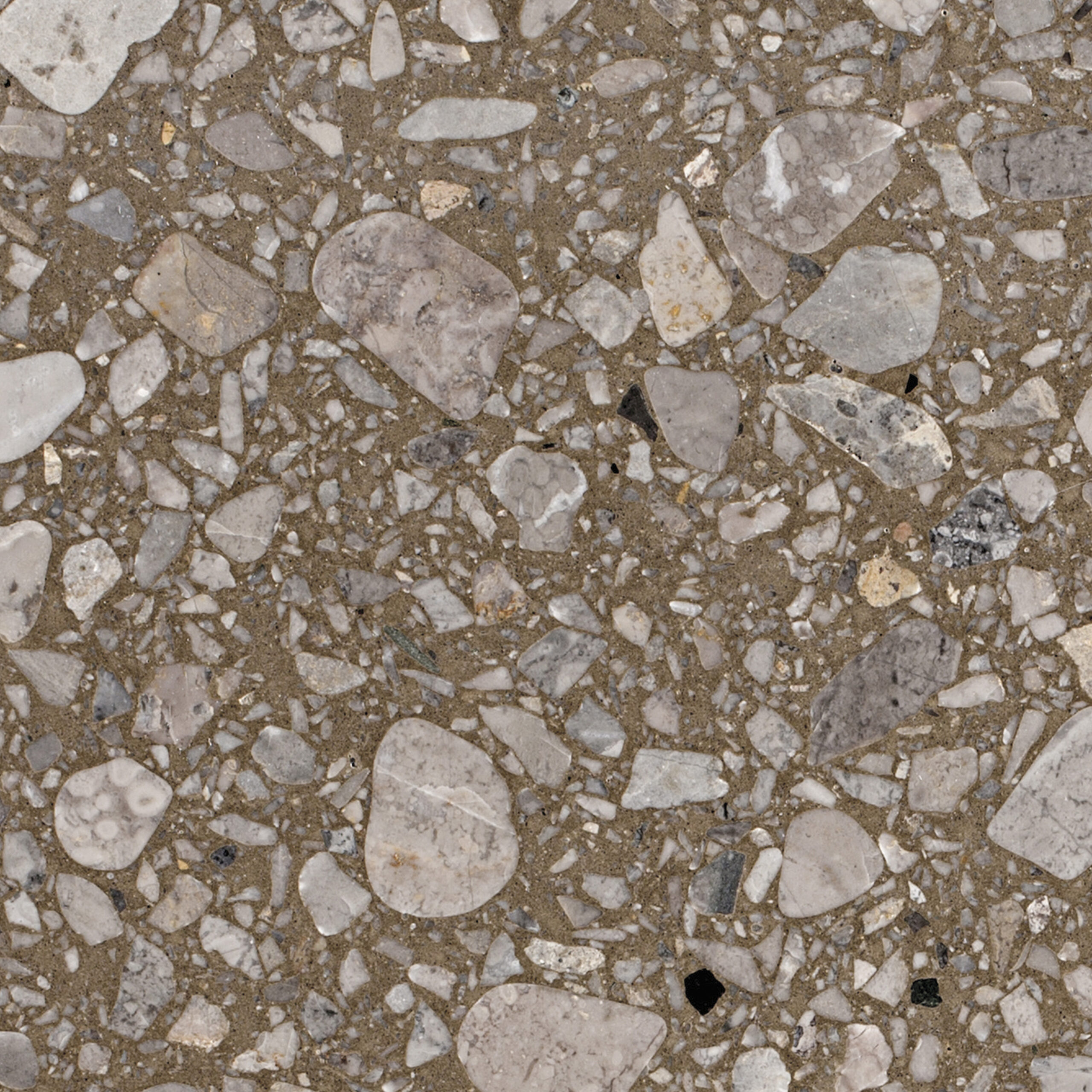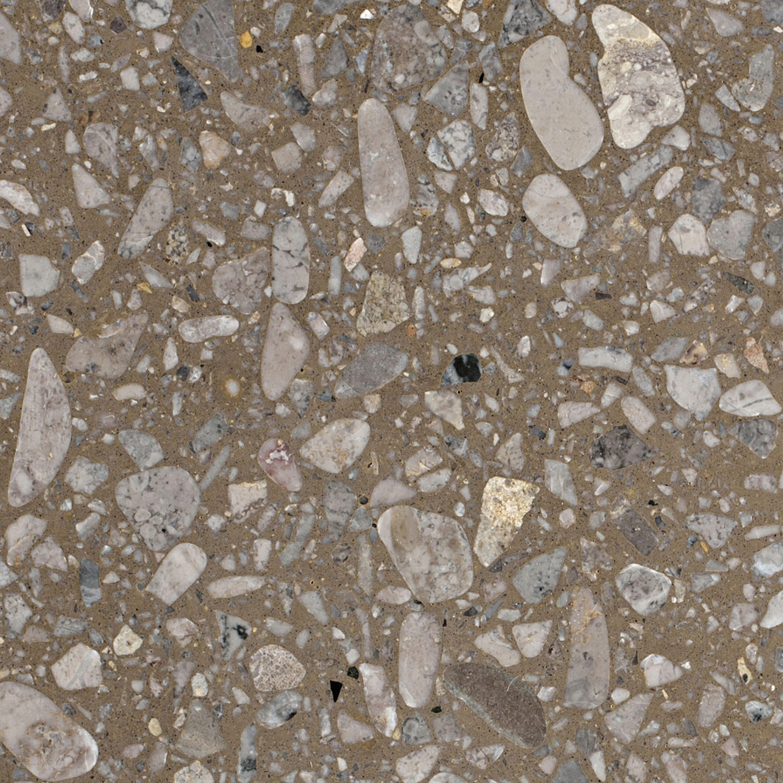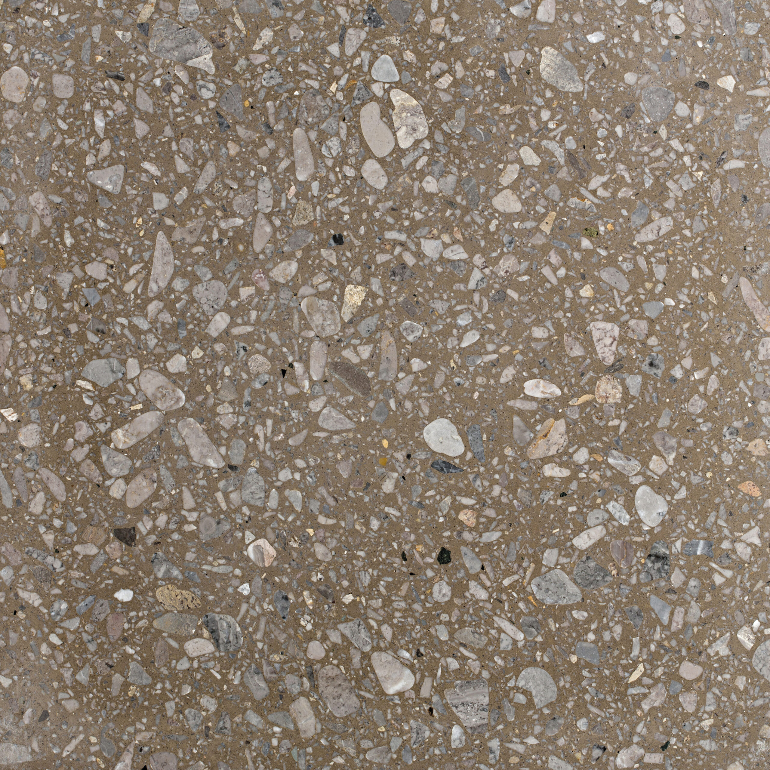 SB 125 Bruno Rotondo di Agglotech è un terrazzo dal carattere caldo e deciso, con un fondo marrone intenso arricchito da graniglie di marmo nei toni del grigio, del beige e del nocciola. Le scaglie di diverse dimensioni creano un effetto armonioso e vibrante, che richiama la tradizione del terrazzo classico reinterpretato in chiave contemporanea. Versatile ed elegante, questo colore terrazzo si presta a pavimenti e rivestimenti di ambienti residenziali e commerciali, donando personalità e accoglienza ad ogni spazio architettonico.