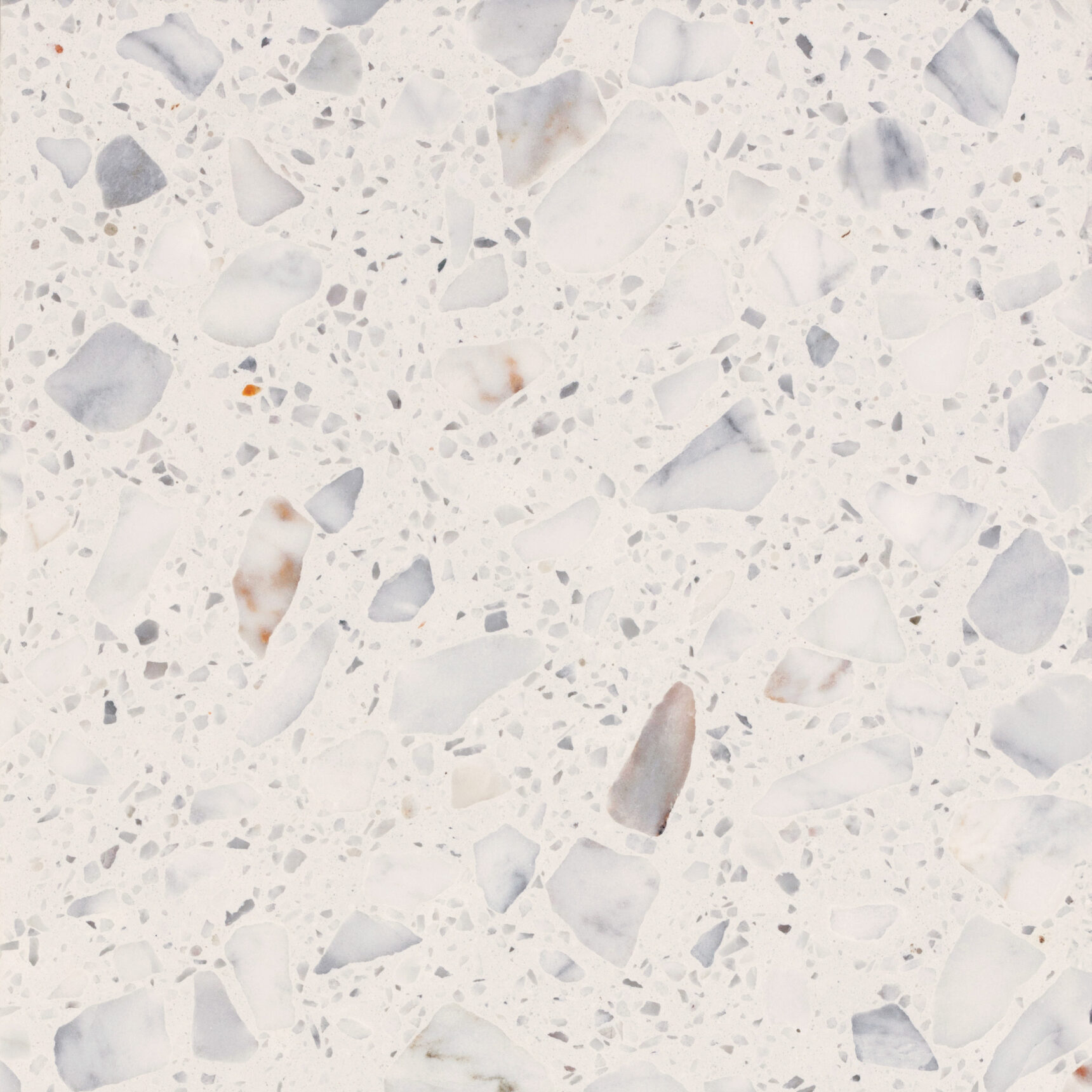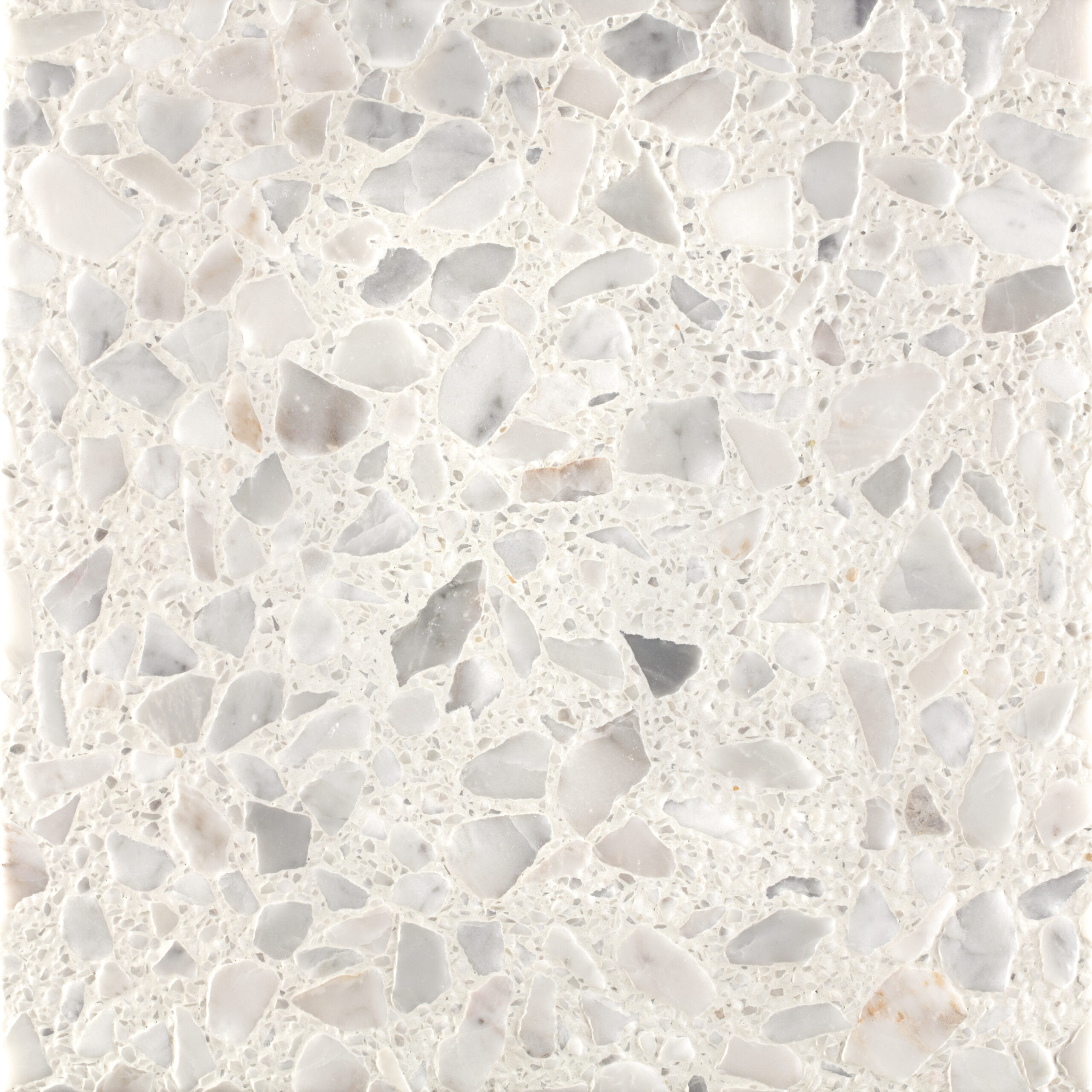 SB 250 Lido di Agglotech è un terrazzo chiaro con base bianca e graniglia di marmo a grana grossa nei toni del bianco e del grigio. Una finitura luminosa e vivace che dona eleganza e movimento agli spazi.