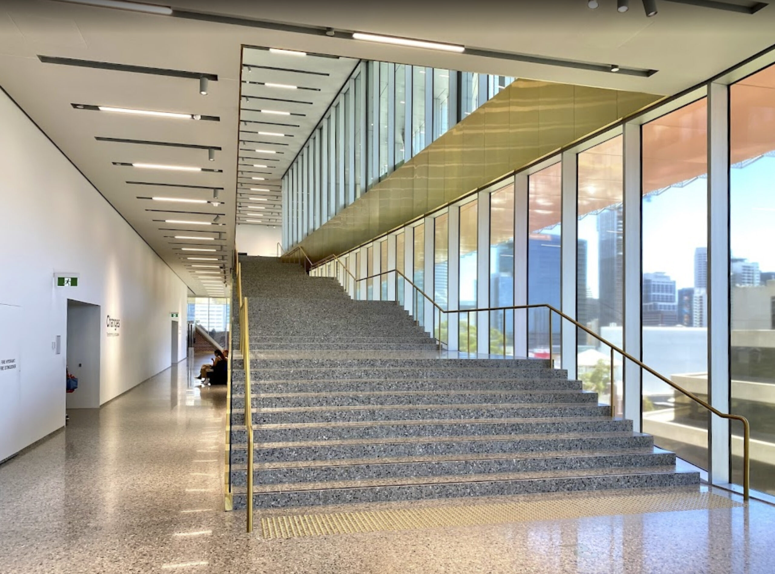 Per il WA Museum Boola Bardip, Agglotech ha realizzato due versioni custom made, le colorazioni REG 3066 e REG 3067, pensate per armonizzarsi con le diverse aree espositive e ricreative della struttura. La prima presenta scaglie di marmo scure immerse in una base cementizia rossastra, una combinazione che dona calore e profondità agli ambienti dedicati alle opere d’arte e alle zone di relax. La seconda, invece, si distingue per la cromia grigio chiara, scelta per la sala centrale e i corridoi principali, dove la luce naturale viene amplificata dalla superficie liscia e riflettente del terrazzo.