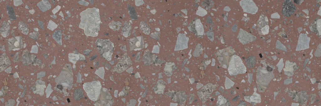 Colori Colours SB 300 Chioggia di Agglotech è un terrazzo dal forte carattere, con fondo rosso caldo che accoglie graniglie di marmo grigio di grandi dimensioni. Il contrasto tra le tonalità crea un effetto deciso e scenografico, che richiama l’energia e la vitalità della città marinara da cui prende il nome. Questa finitura unisce tradizione […]